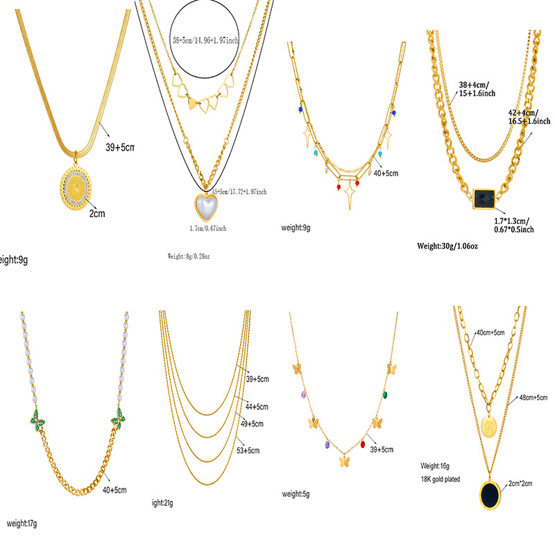 Home > New Arrival > New fashionable and unique multi-layered clavicle chain necklace with pearl, butterfly, heart, and portrait pendants.