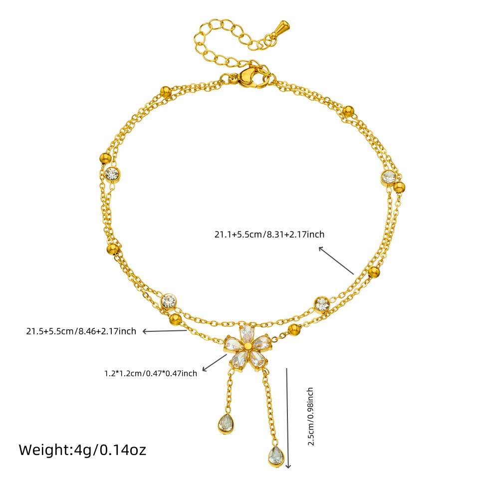 Home > New Arrival > New fashionable diamond-encrusted five-petal flower chain with tassels, double-layered stainless steel gold-plated delicate chain anklet.