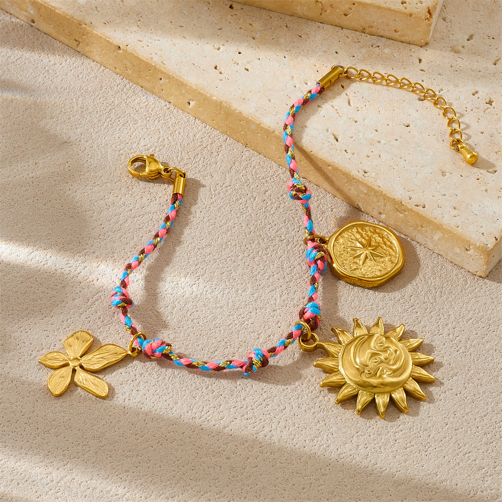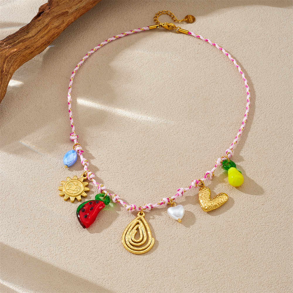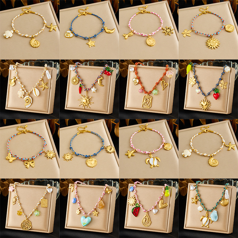 Home > New Arrival > New hot-selling handmade woven colorful rope bohemian multi-element gold-plated marine life pendant necklace and bracelet
