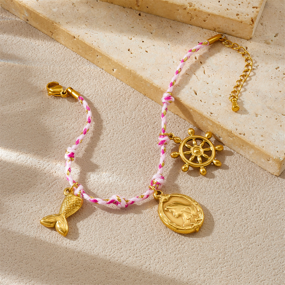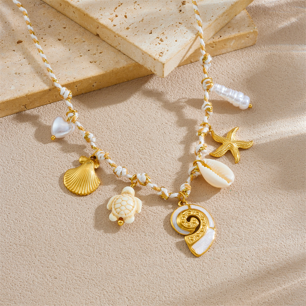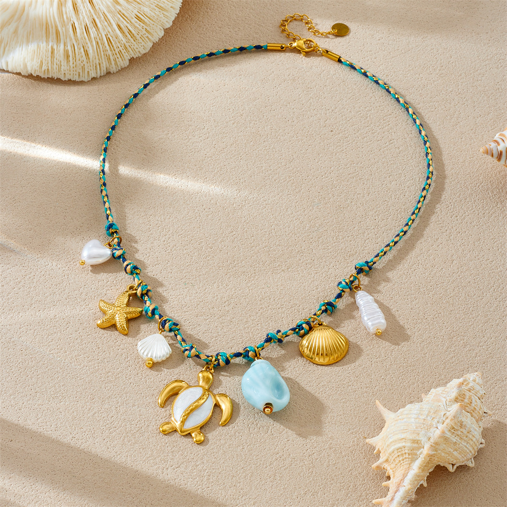 New hot-selling handmade woven colorful rope bohemian multi-element gold-plated marine life pendant necklace and bracelet