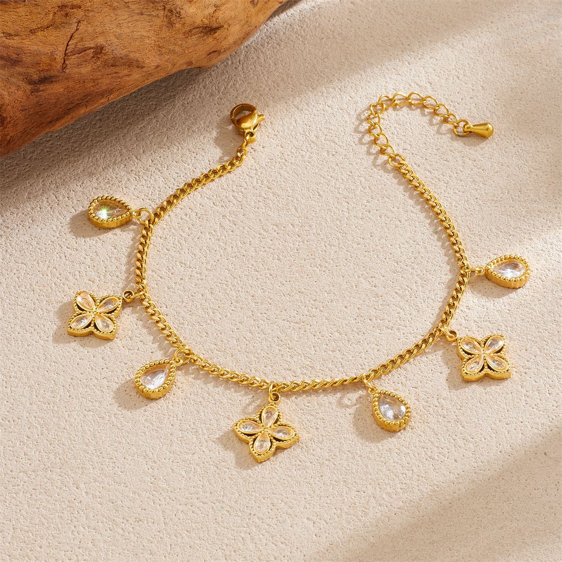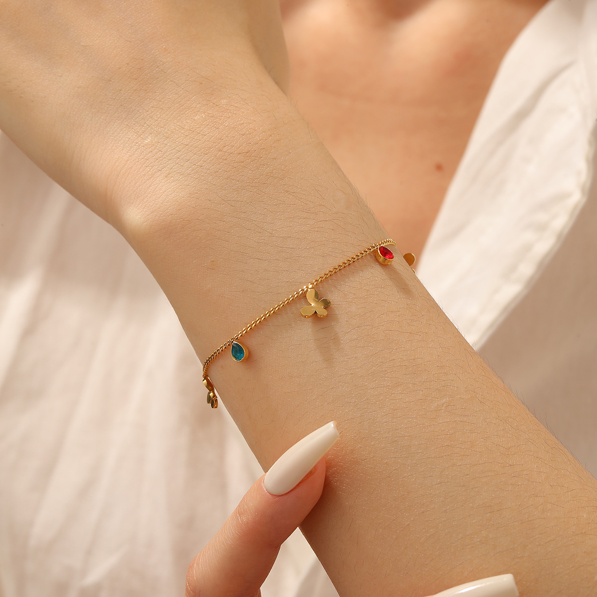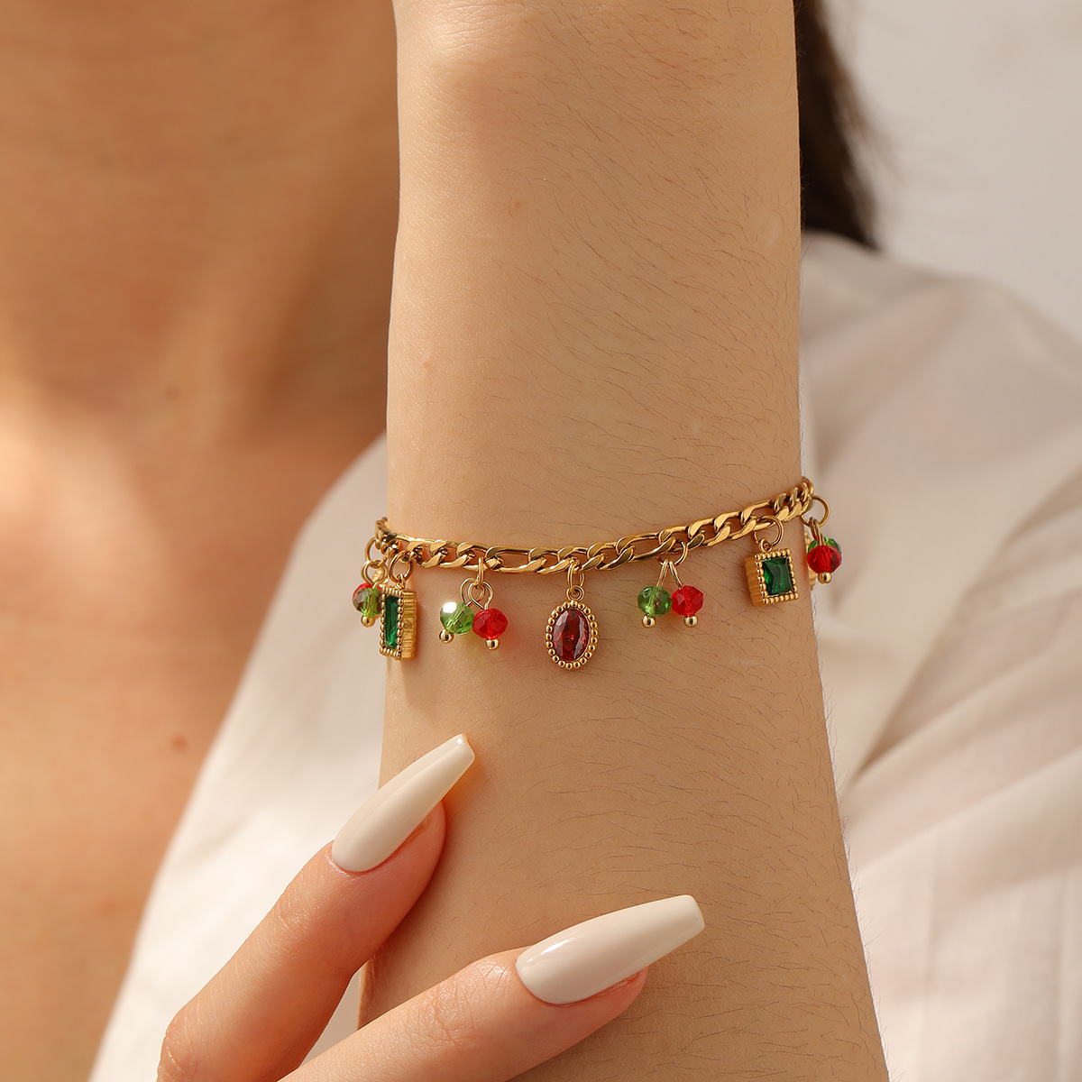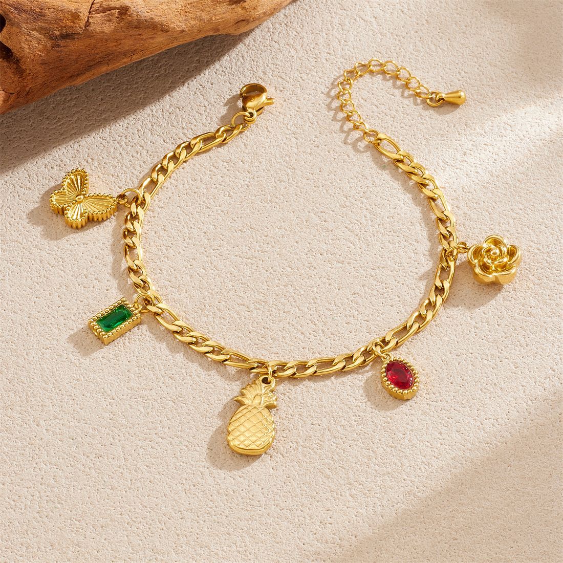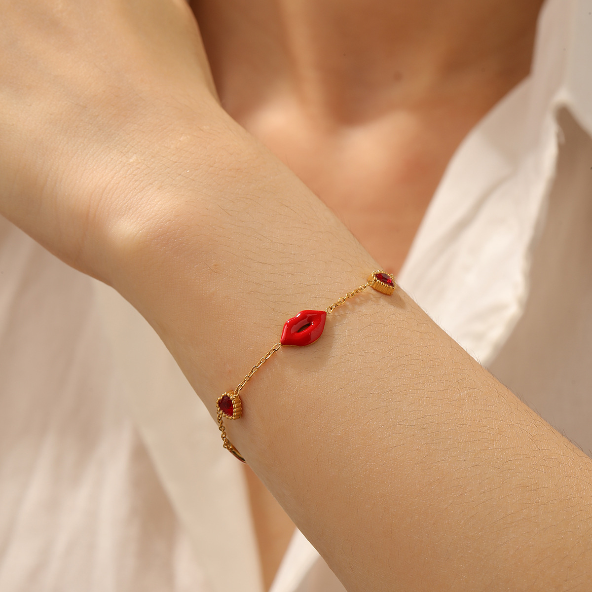 Home > New Arrival > New minimalist and exquisite thin chain stainless steel bracelet with dripping lip, fruit, flower, and rhinestone accessories.