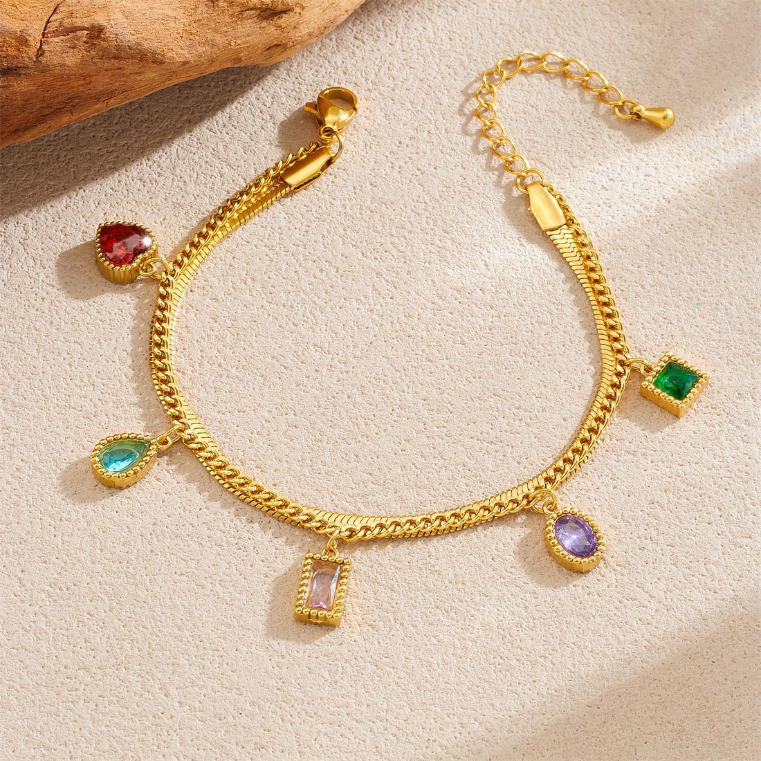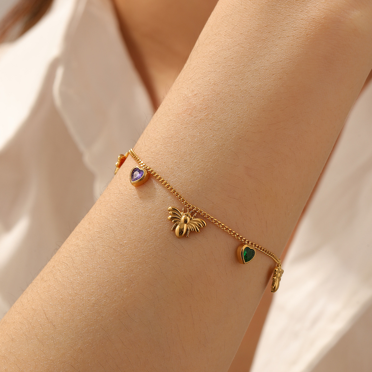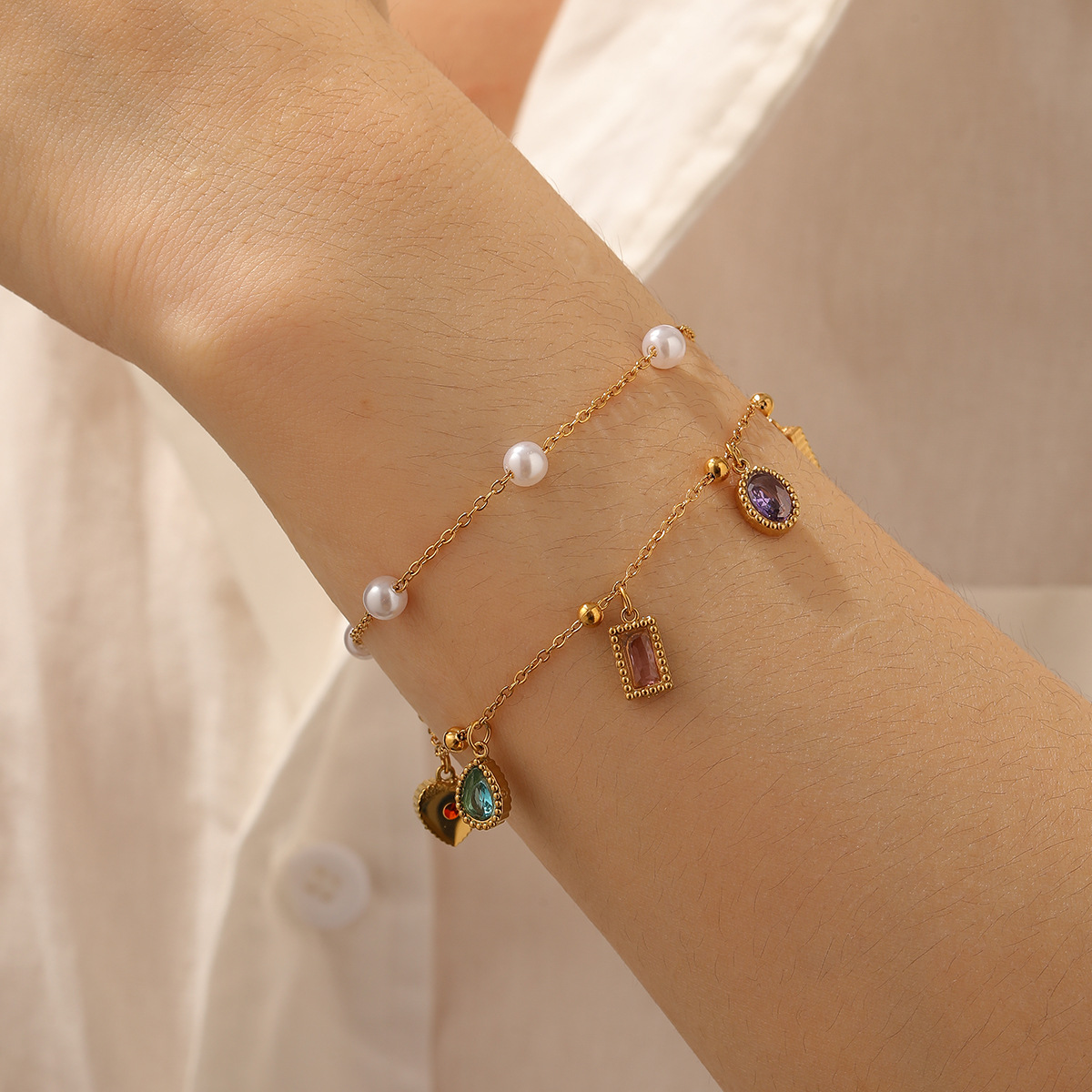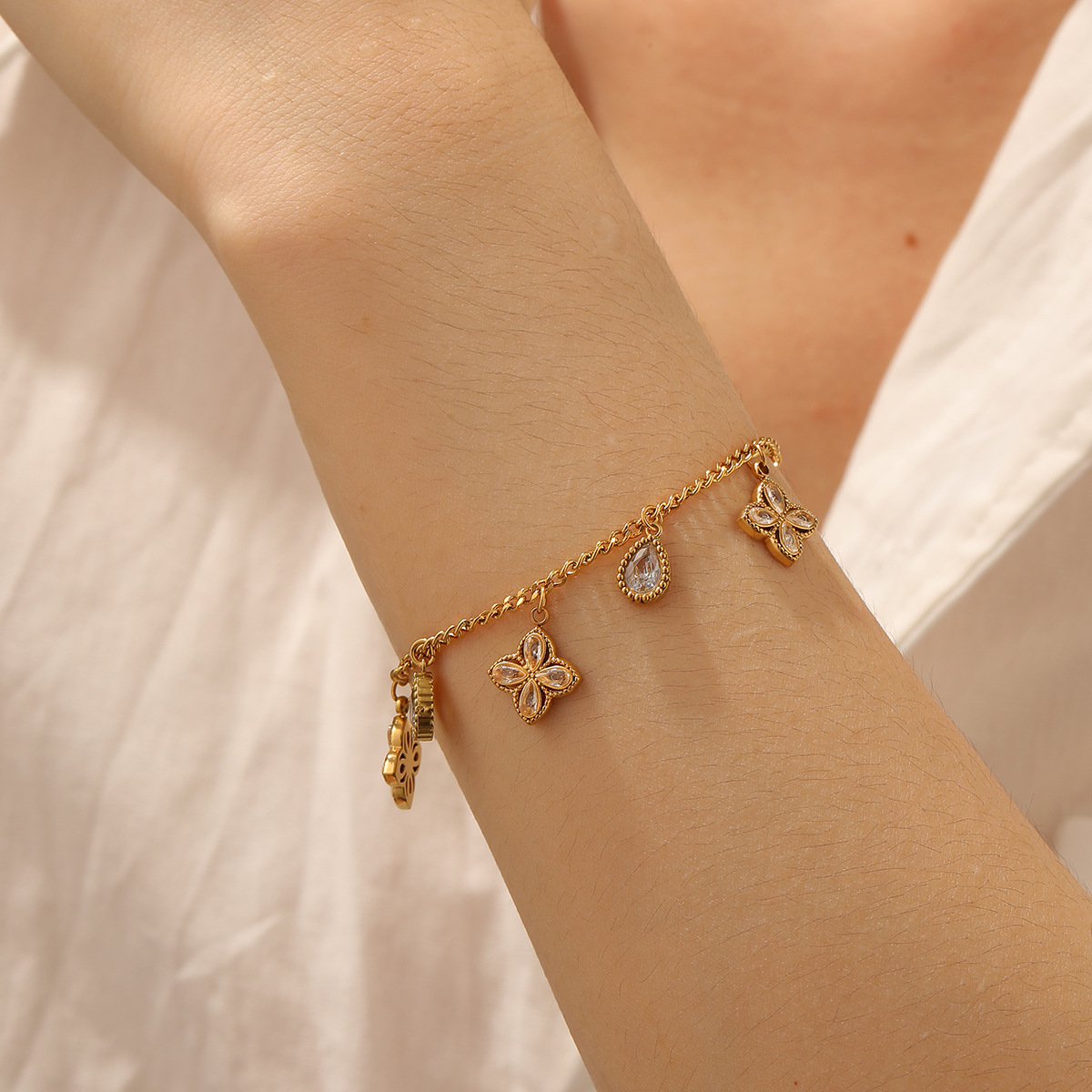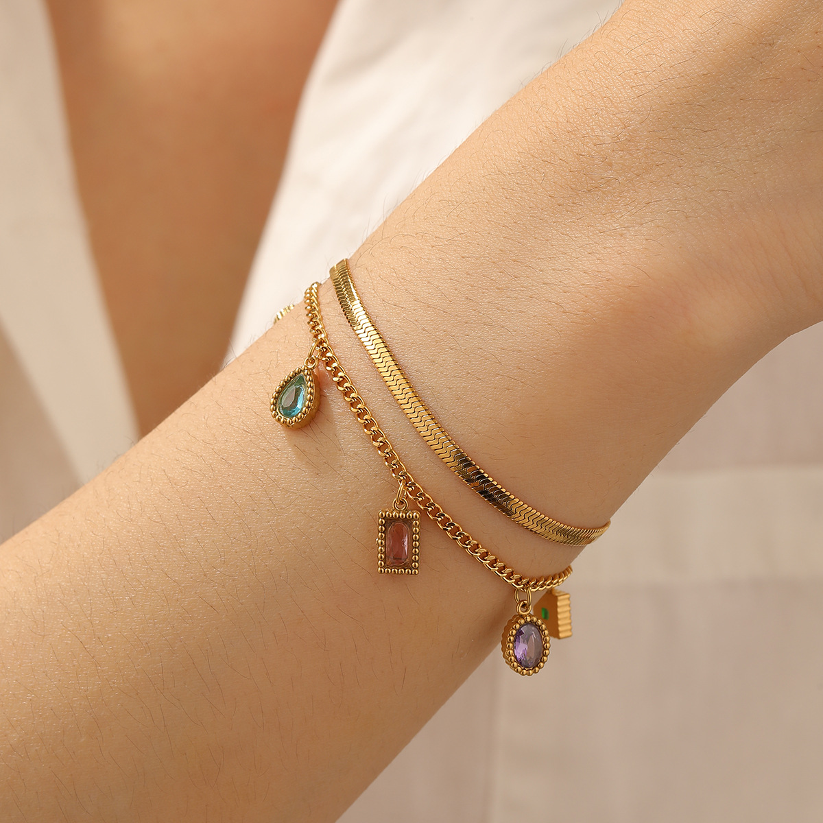 Home > New Arrival > New minimalist and exquisite thin chain stainless steel bracelet with dripping lip, fruit, flower, and rhinestone accessories.