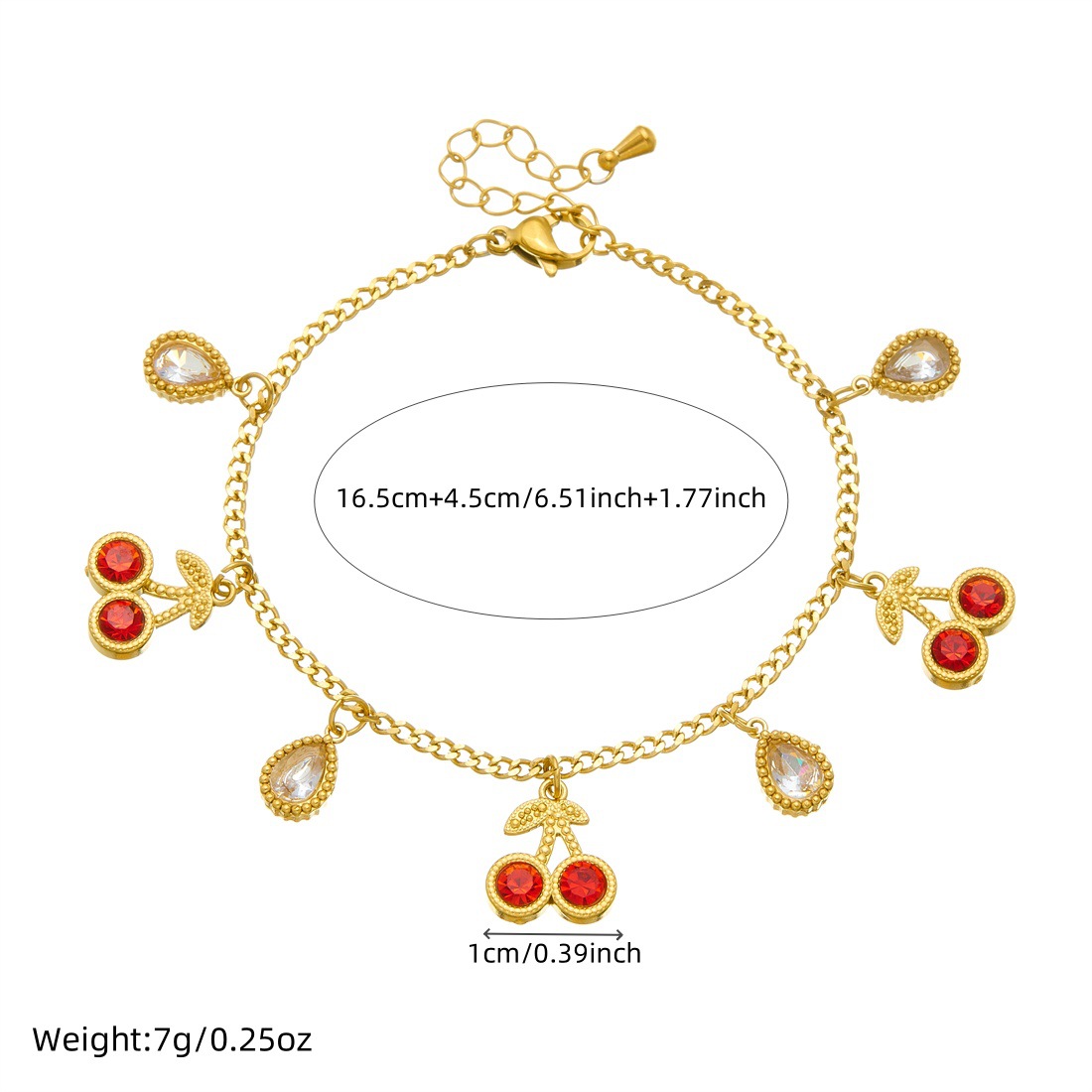 New minimalist and exquisite thin chain stainless steel bracelet with dripping lip, fruit, flower, and rhinestone accessories.
