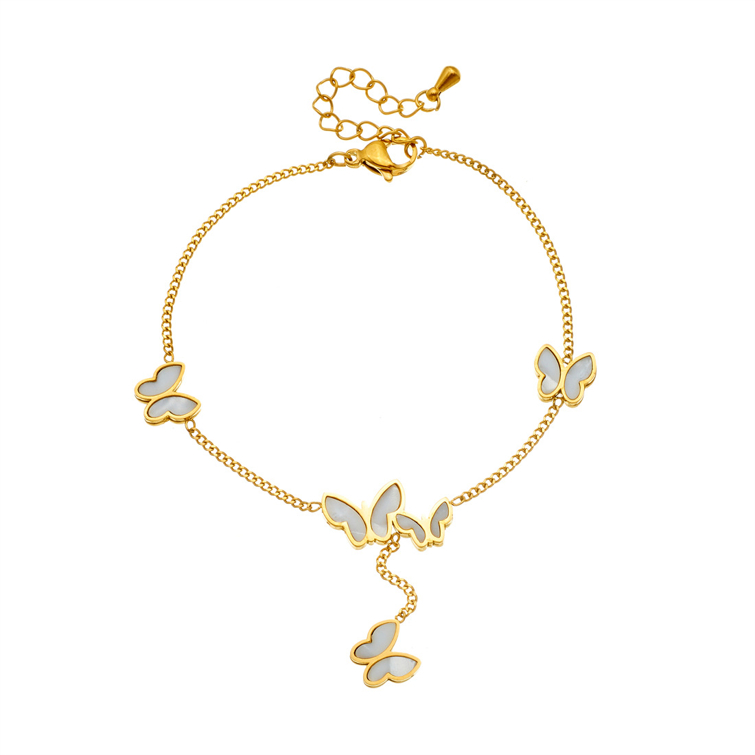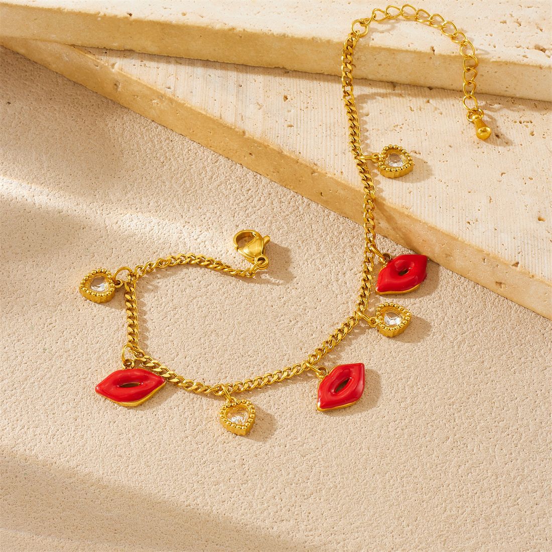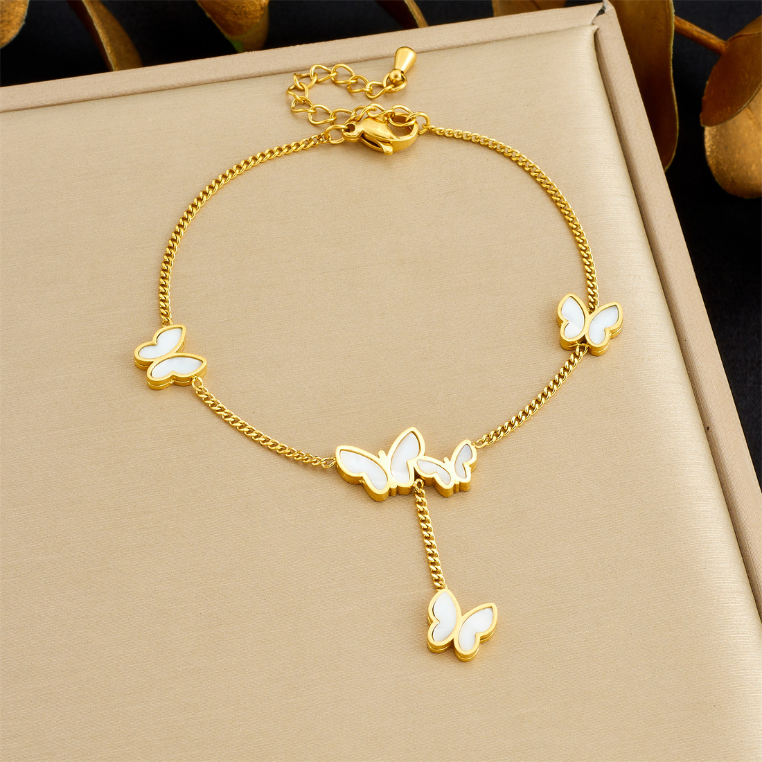 Home > New Arrival > New minimalist and exquisite thin chain stainless steel bracelet with dripping lip geometric rhinestone butterfly accessory.