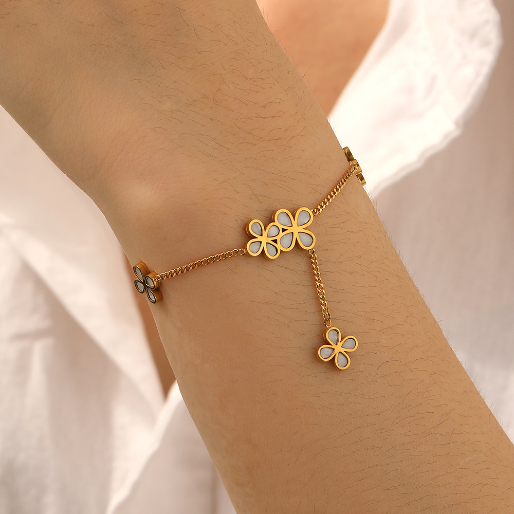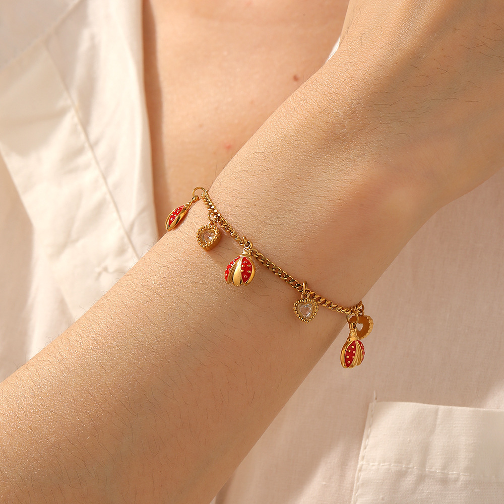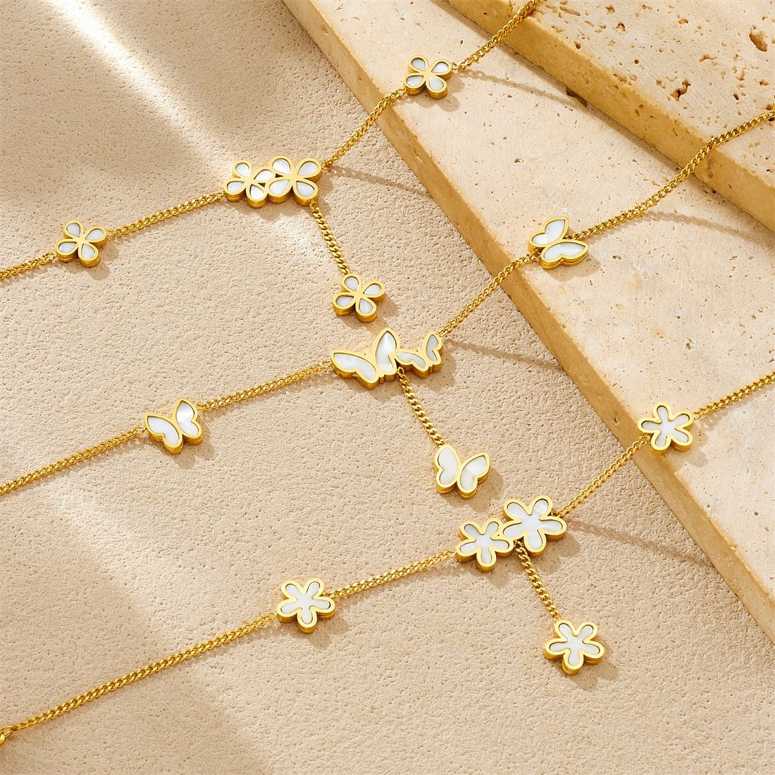 Home > New Arrival > New minimalist and exquisite thin chain stainless steel bracelet with dripping lip geometric rhinestone butterfly accessory.