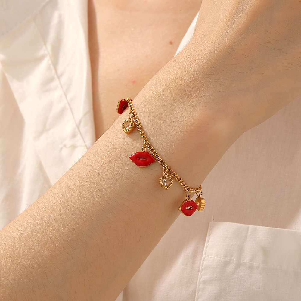 New minimalist and exquisite thin chain stainless steel bracelet with dripping lip geometric rhinestone butterfly accessory.