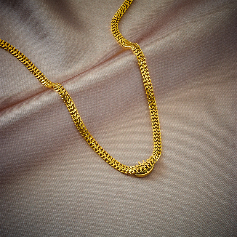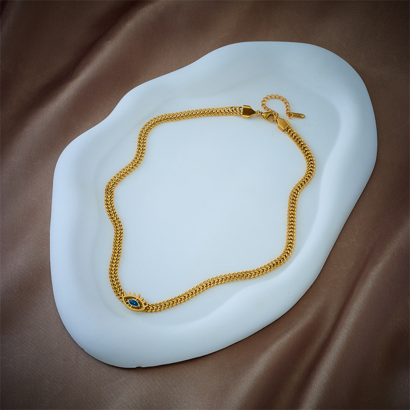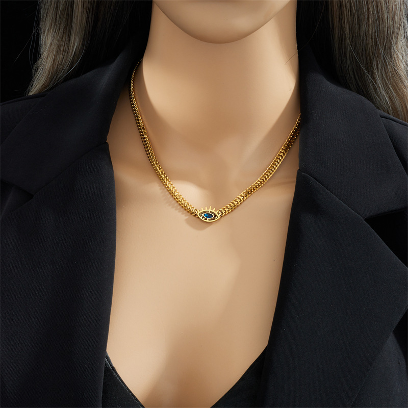 Home > New Arrival > New minimalist creative personalized hollowed-out blue eyes titanium steel metal chain hip-hop necklace