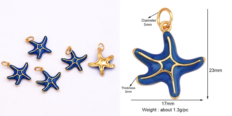 New Multicolor Enamel Pearl Scallop Starfish Seahorse Charm Necklace Pendant,Summer Beach Holiday Jewelry Components Supply L34