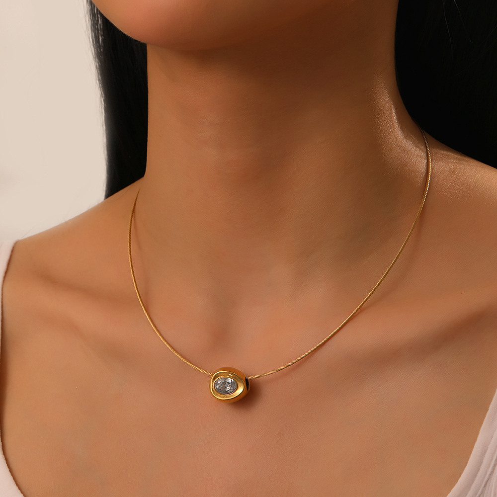 New product: Simple diamond-encrusted ingot-shaped pendant, versatile and high-end clavicle chain, stainless steel gold-plated necklace for women.