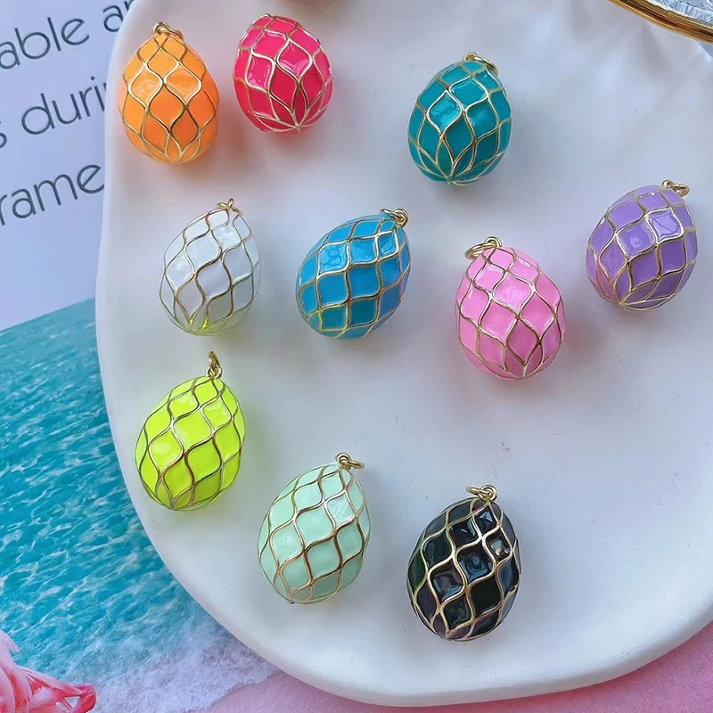 New Style Rabbit Enamel 3D Ball Egg Teardrop Shape Big Size Charm Pendant,Fashion Gold Plated Water Ripples DIY Necklace Jewelry Accessories L20