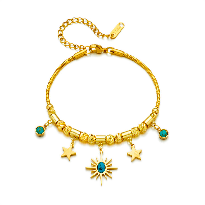 Home > New Arrival > New titanium steel non-fading geometric blue turquoise oval sun and star pendant jewelry bracelet