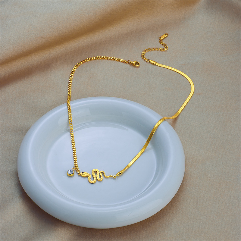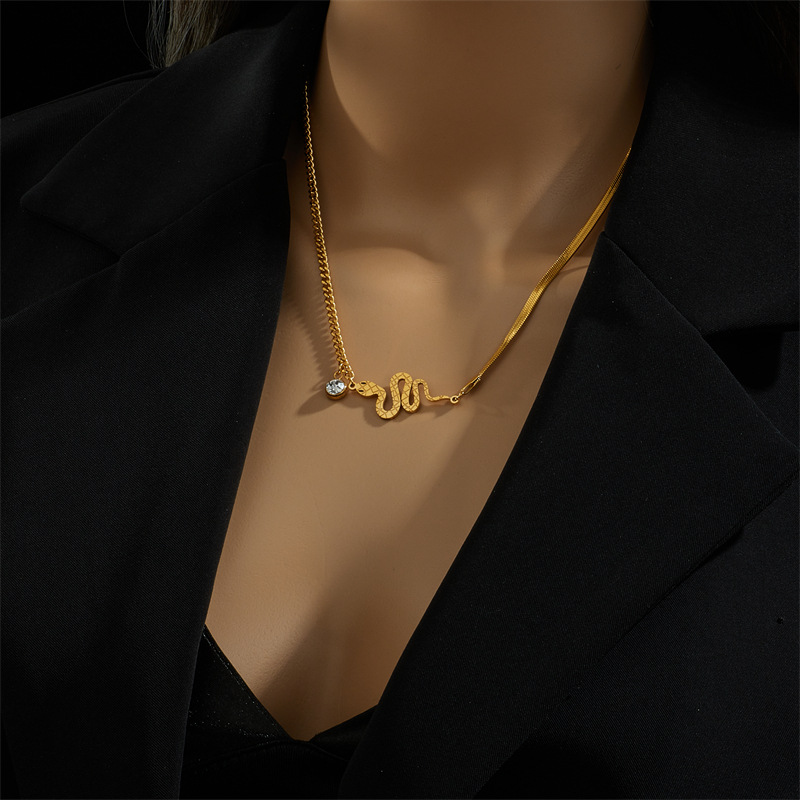 Home > New Arrival > New titanium steel non-fading metal asymmetrical chain snake-shaped diamond pendant necklace