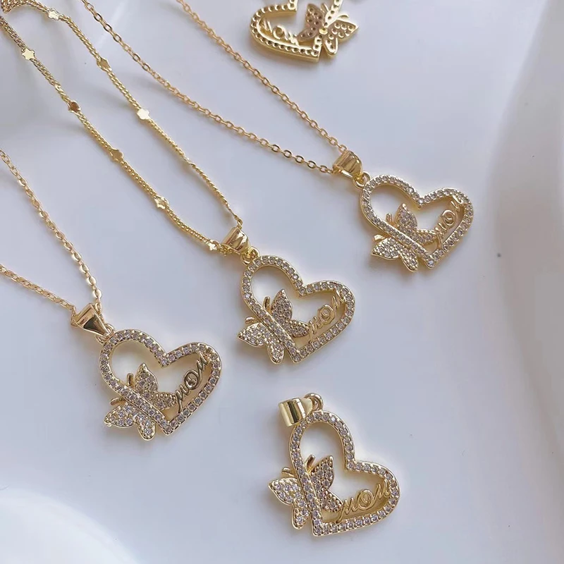 New Vintage Victorian Love Heart Zircon Charm Pendant,Creative Butterfly Pentacle 18K Gold Plated Jewelry Necklace Supplies L25