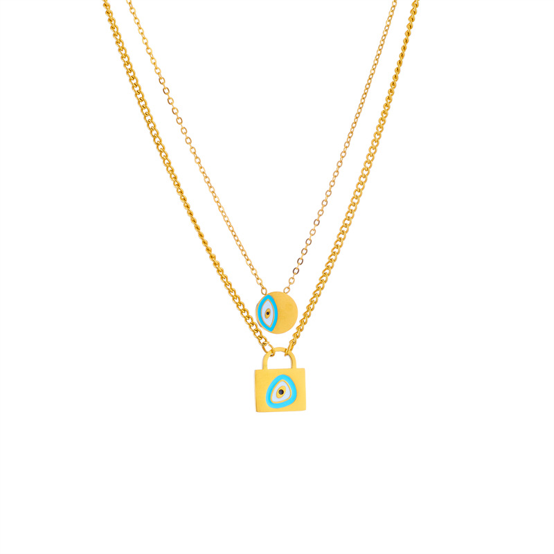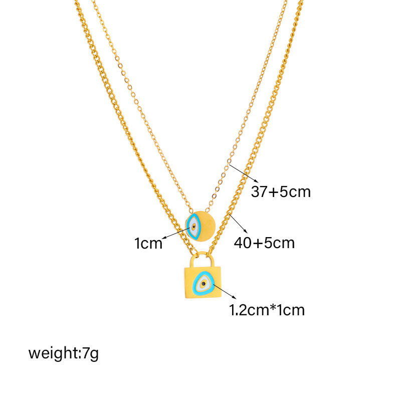 Home > New Arrival > Niche design, simple and unique titanium steel drip padlock head round eye pendant double chain necklace