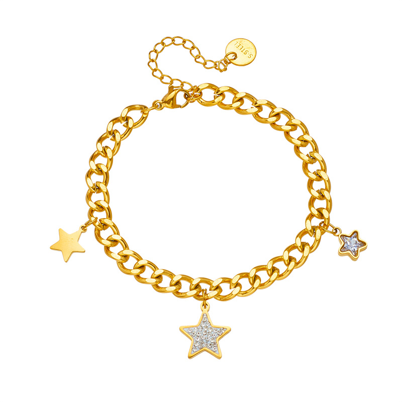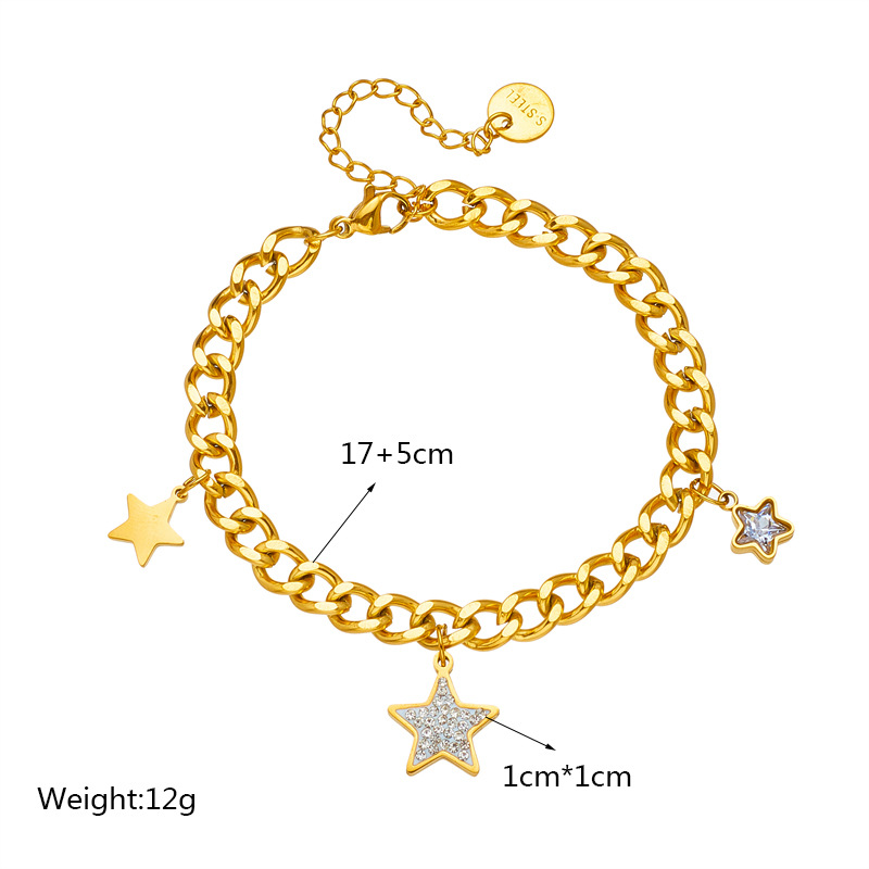 Home > New Arrival > Niche design, simple and versatile, high-end retro, diamond-encrusted five-pointed star titanium steel chunky chain bracelet
