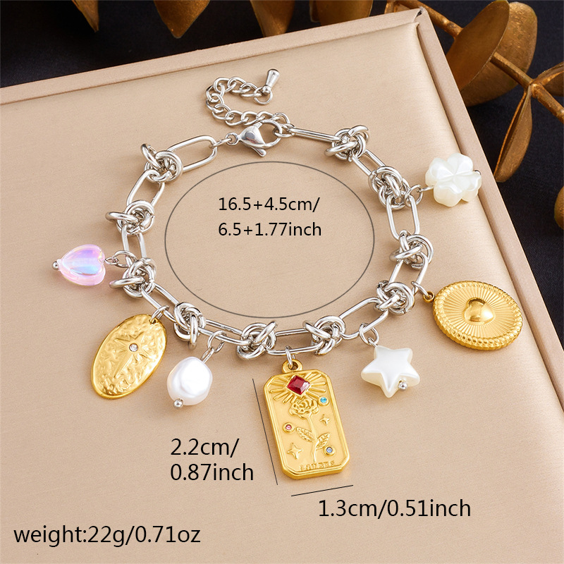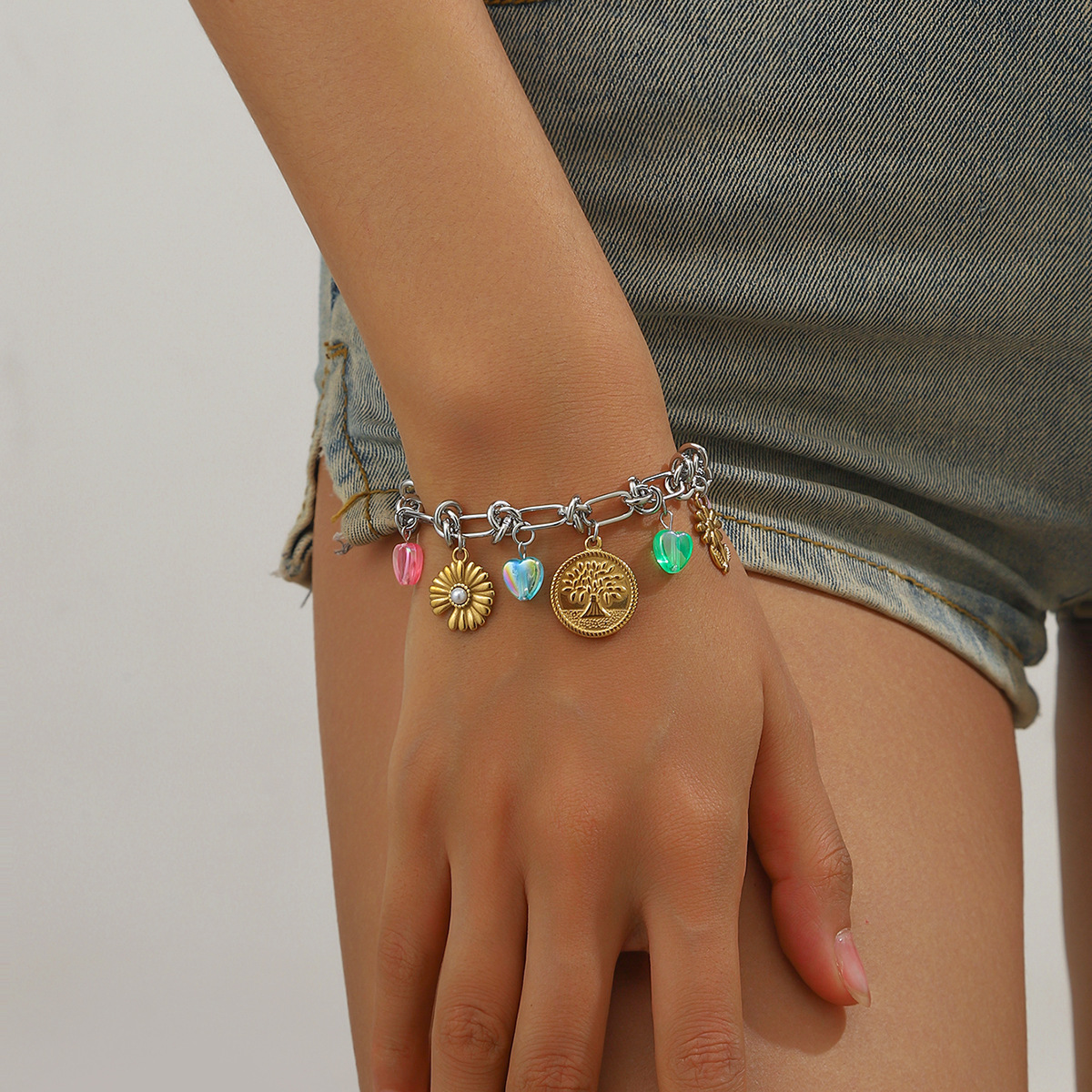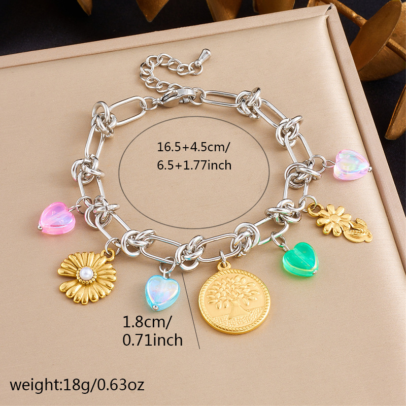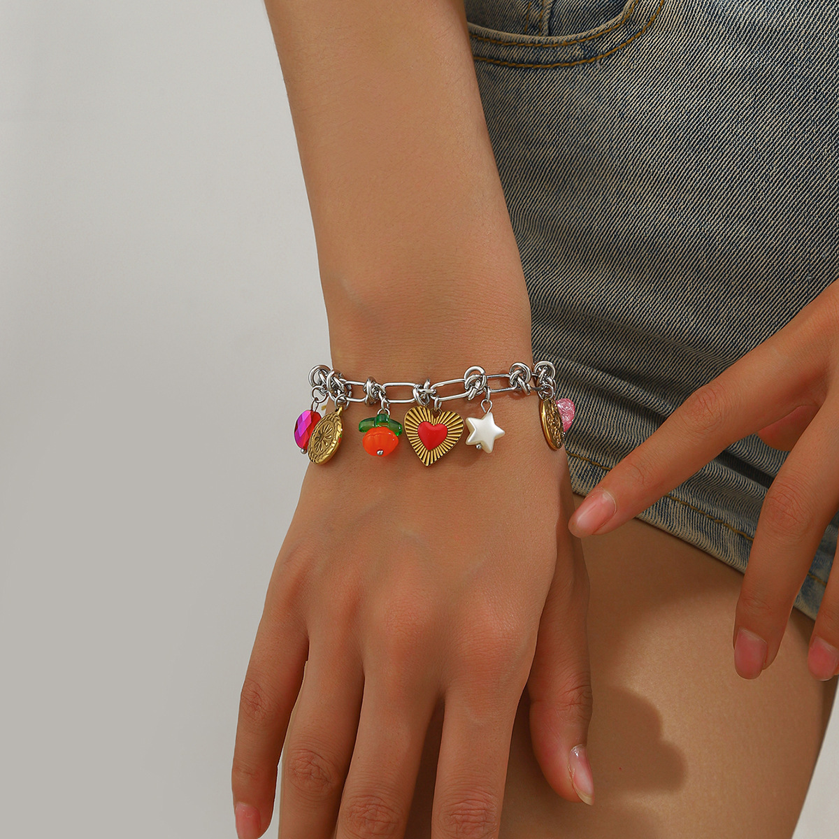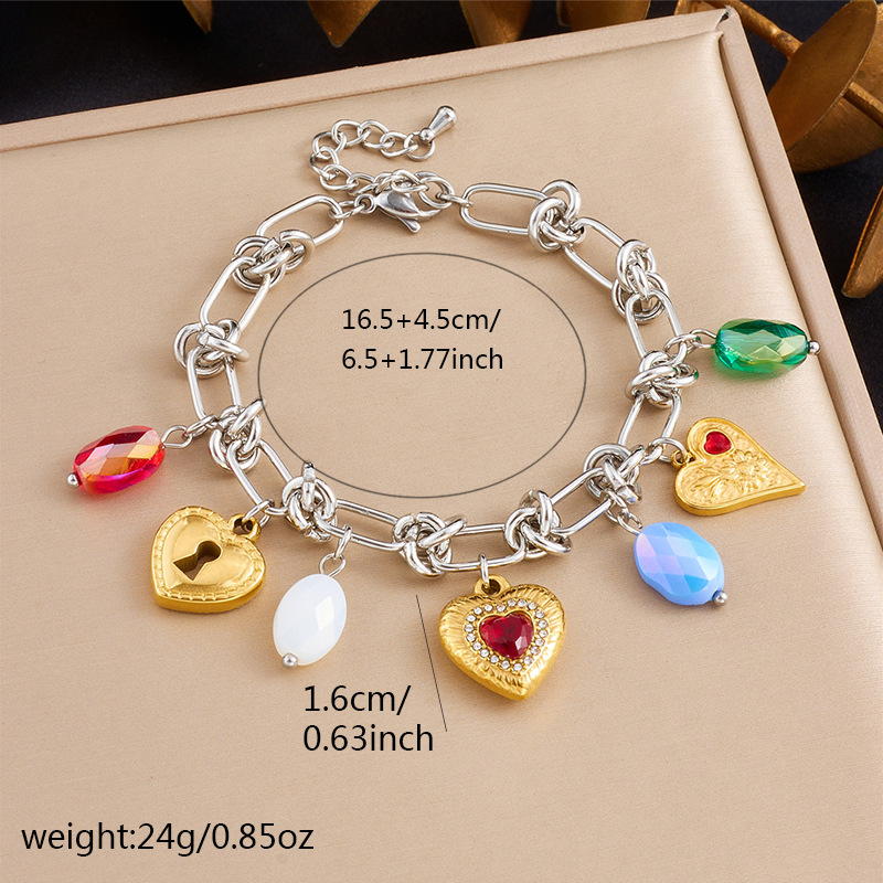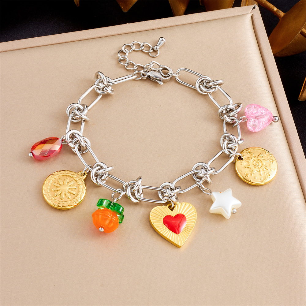 Home > New Arrival > Niche design, stainless steel dripping heart bow round pendant spliced bracelet