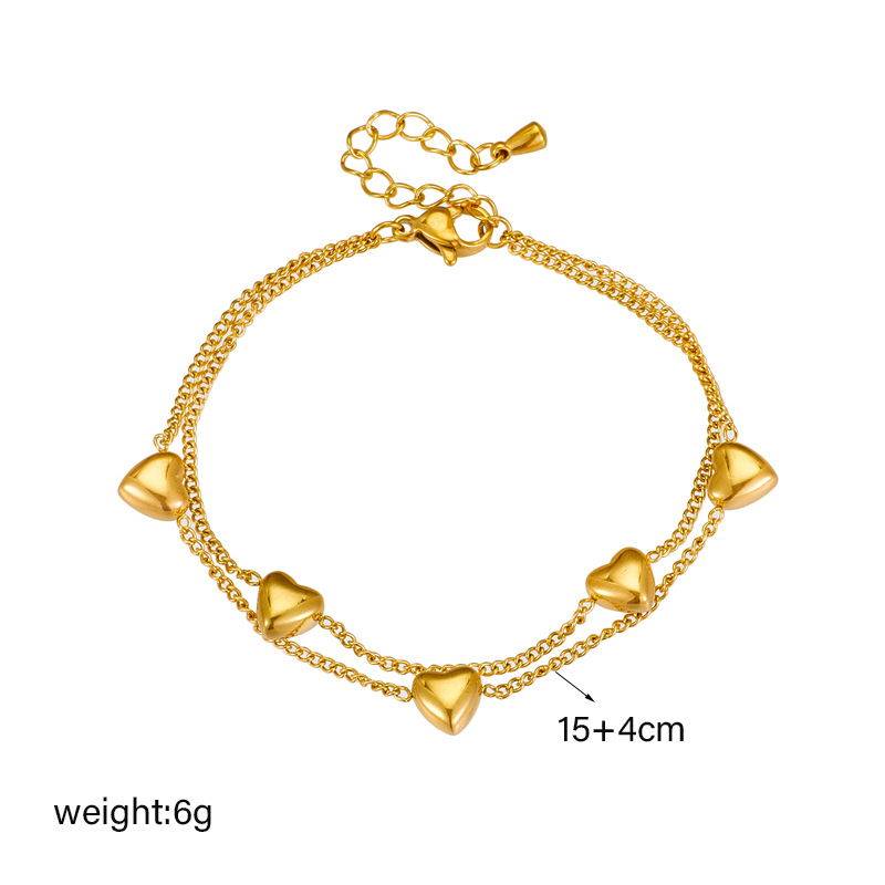 Home > New Arrival > Niche design double chain heart simple versatile high-end titanium steel bracelet for commuting
