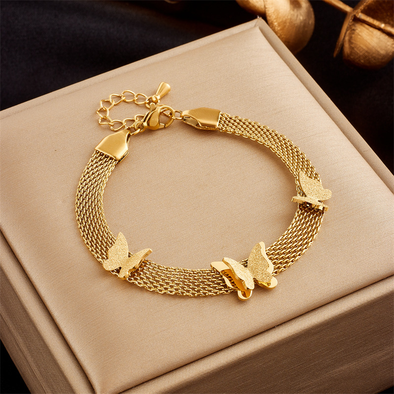 Home > New Arrival > Niche design retro high-end metal chain titanium steel diamond-encrusted hollow butterfly pendant bracelet