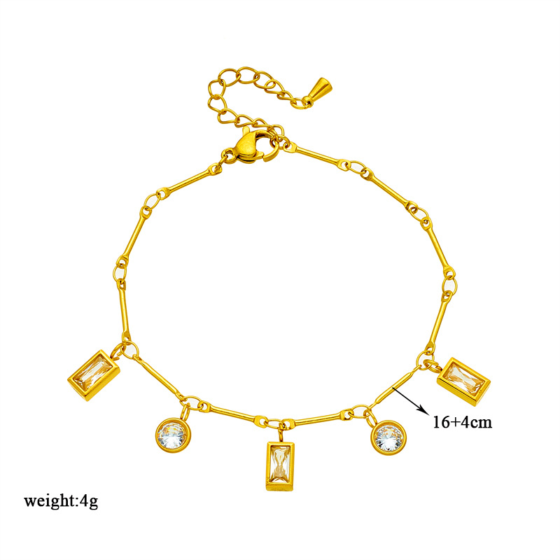 Niche design round and square diamond-encrusted titanium steel chain jewelry bracelet, simple, versatile and elegant bracelet