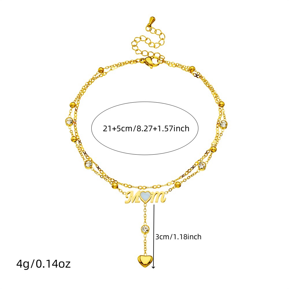 Home > New Arrival > Niche diamond-encrusted heart letter mom tassel chain stackable stainless steel jewelry gold-plated women's anklet