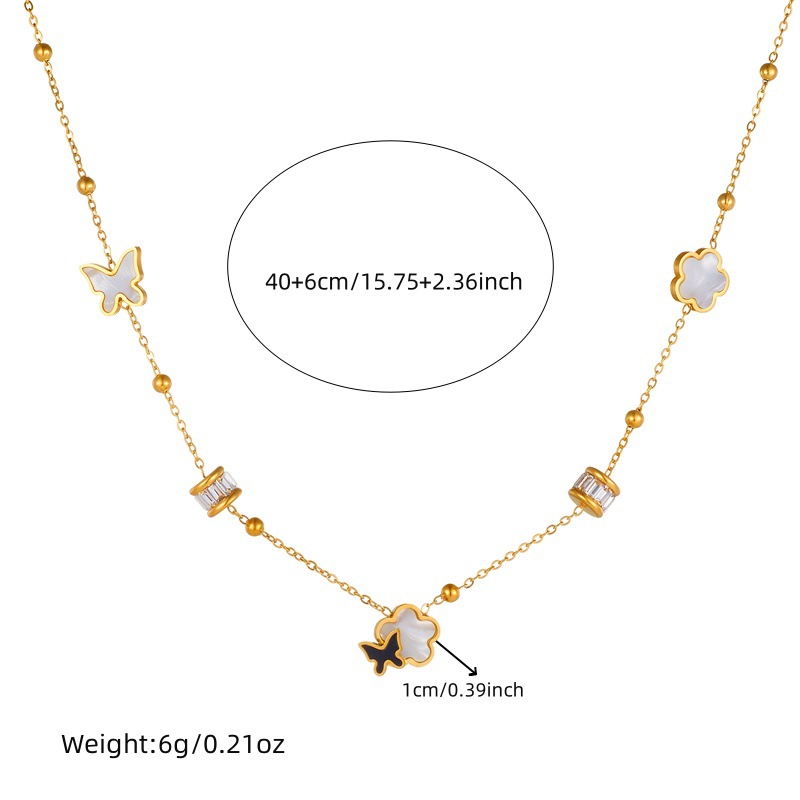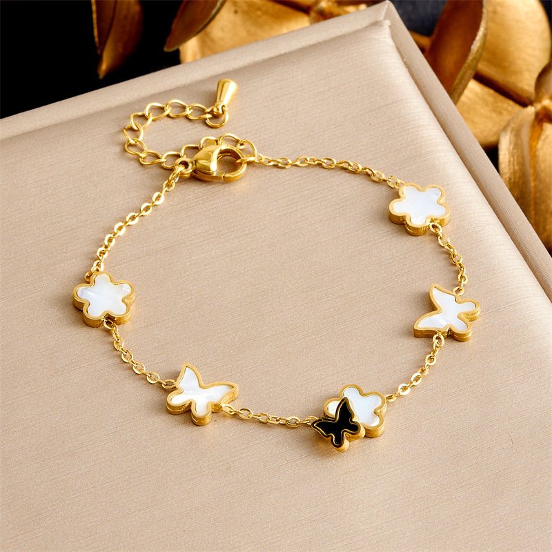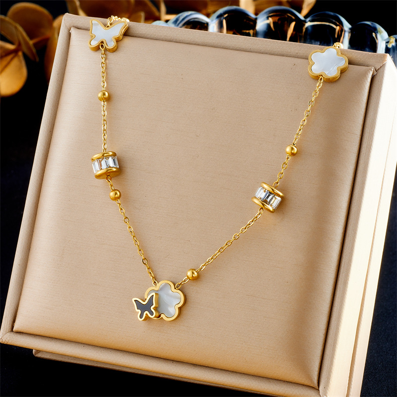 Home > New Arrival > Niche Fashion Retro Style Non-fading Gold Plated Flower and Butterfly Accessories Chain Stainless Steel Bracelet Earring Necklace Set