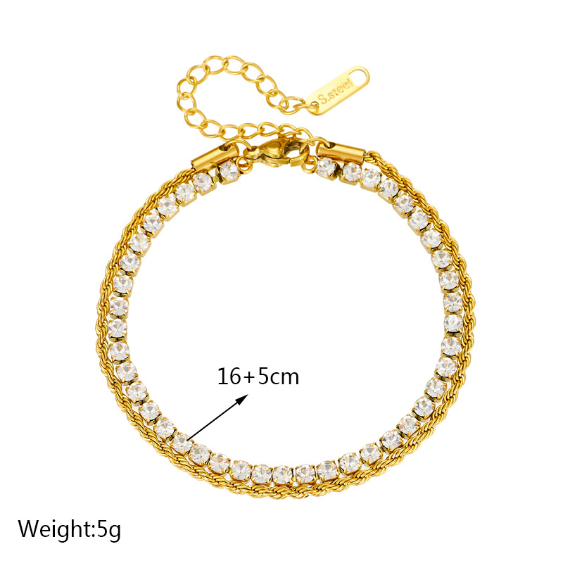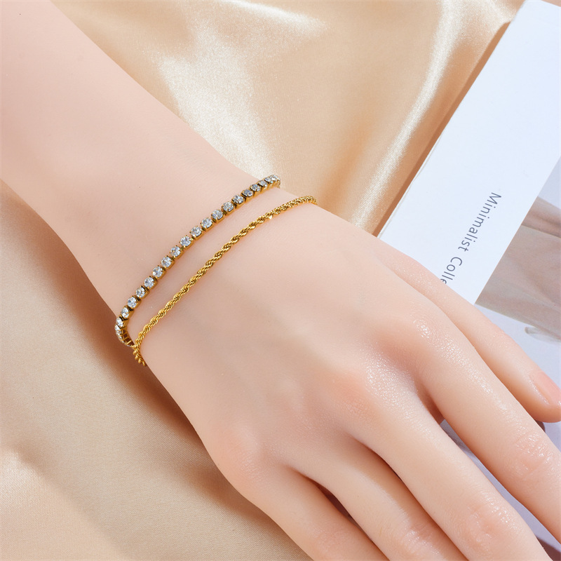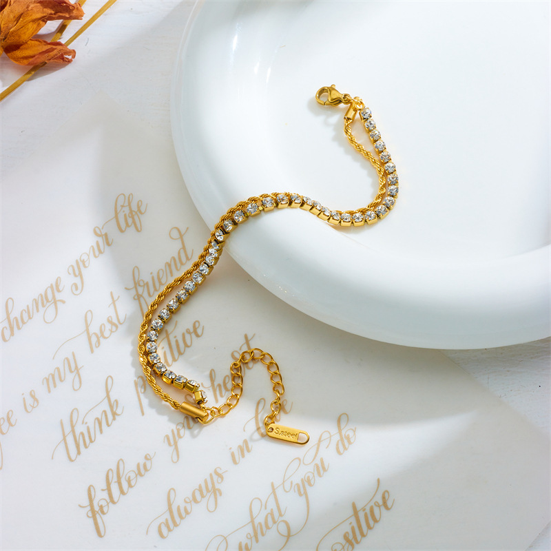 Home > New Arrival > Niche light luxury versatile metal minimalist style gold-plated titanium steel diamond-encrusted twisted chain double layer bracelet