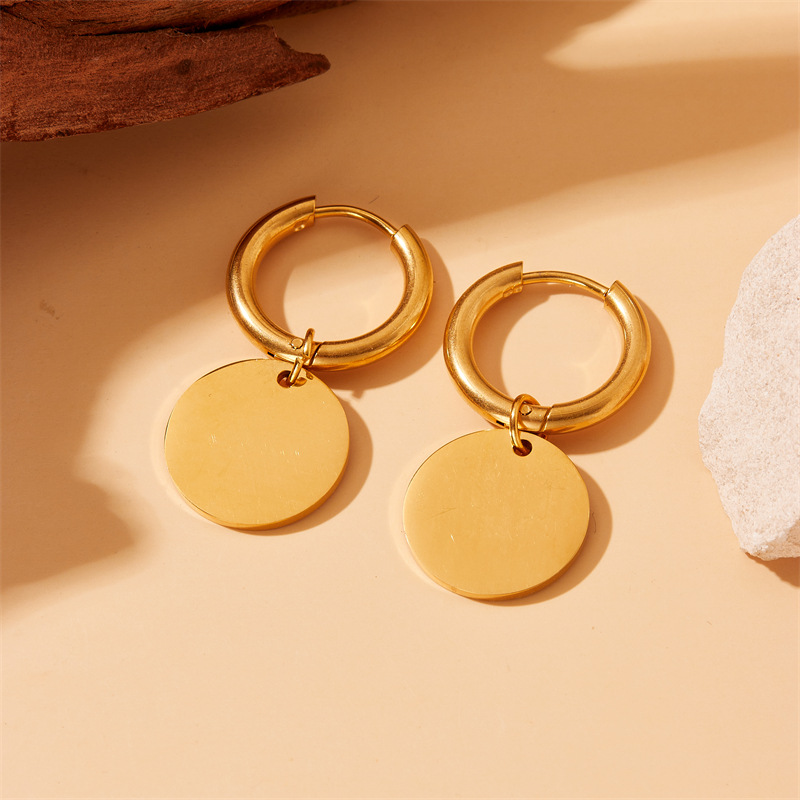 Home > New Arrival > Niche personalized glossy gold-plated stainless steel round geometric pendant earrings