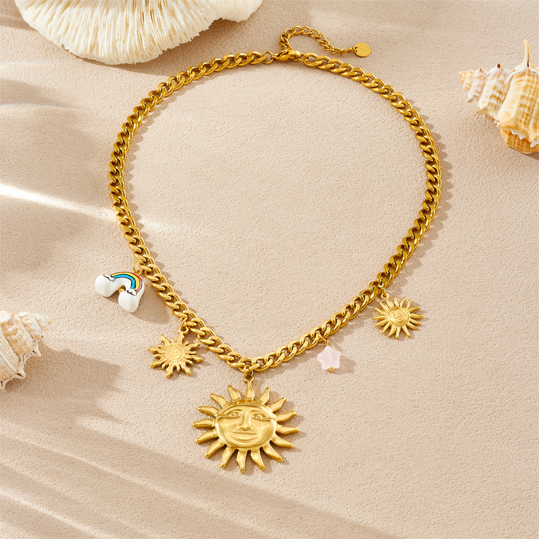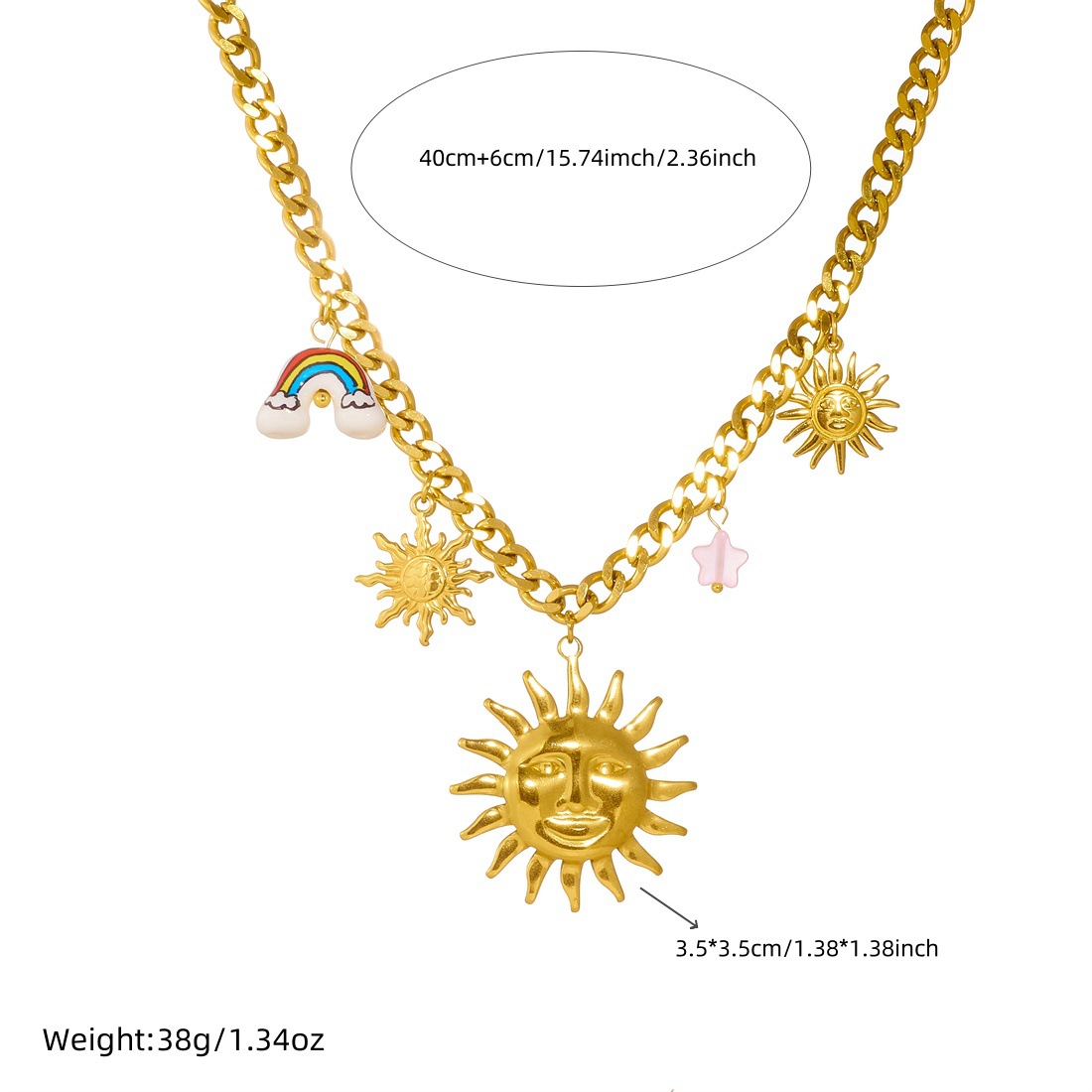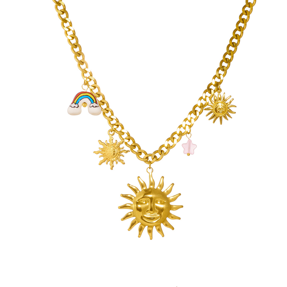 Home > New Arrival > Niche personalized versatile gold-plated stainless steel face sun ceramic rainbow pendant chain jewelry set