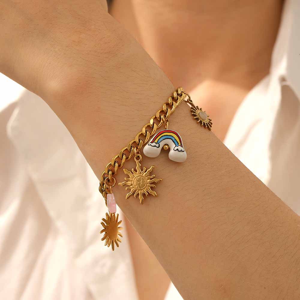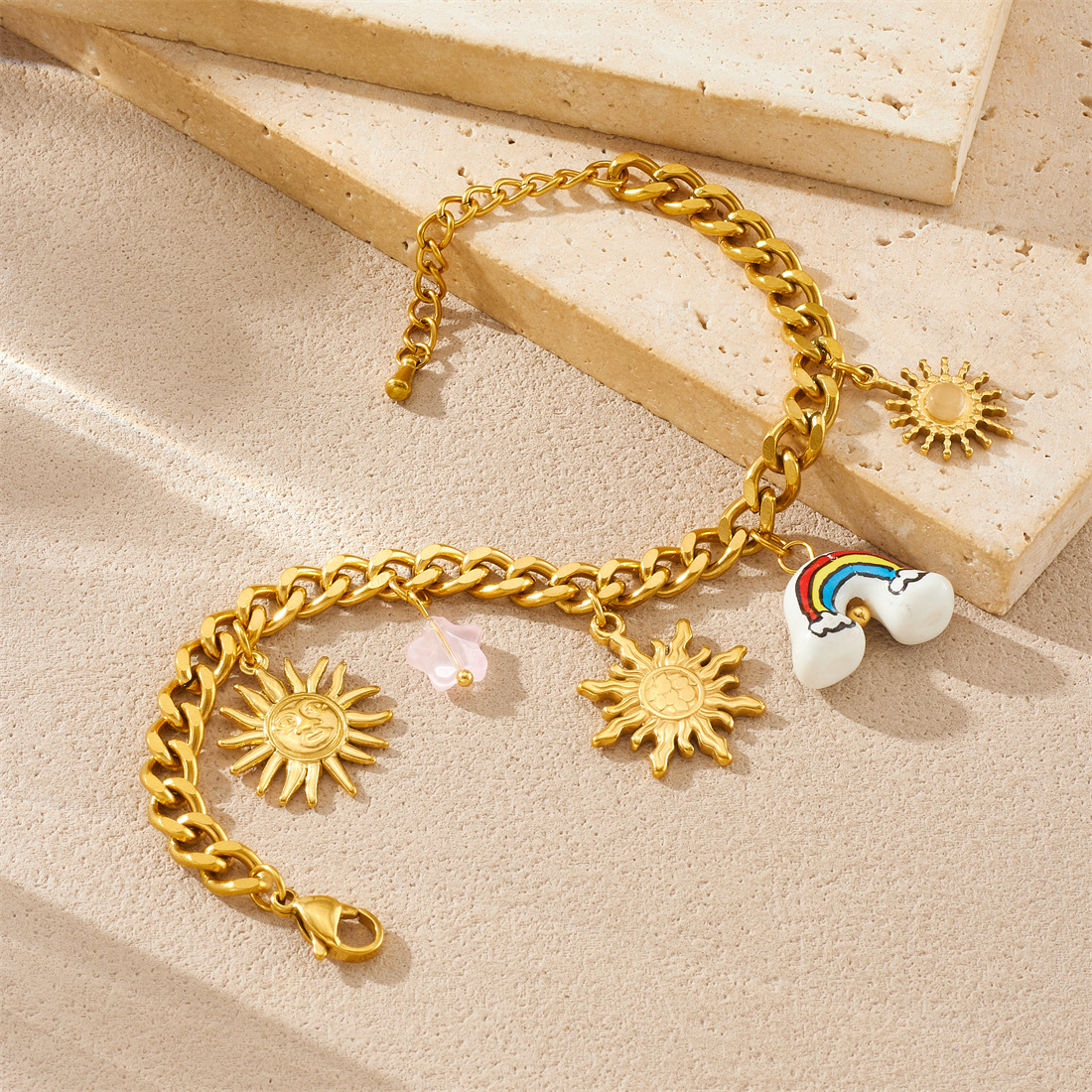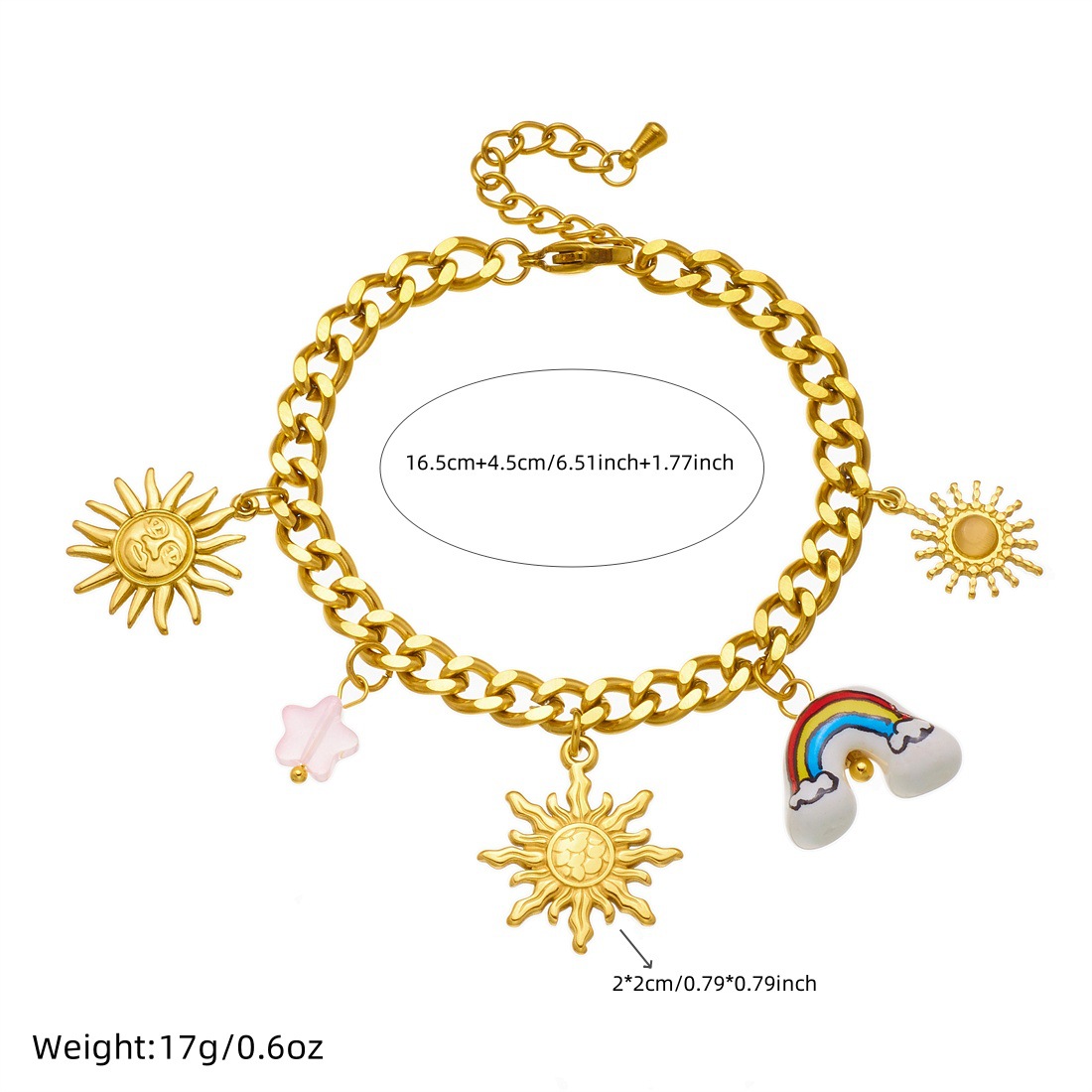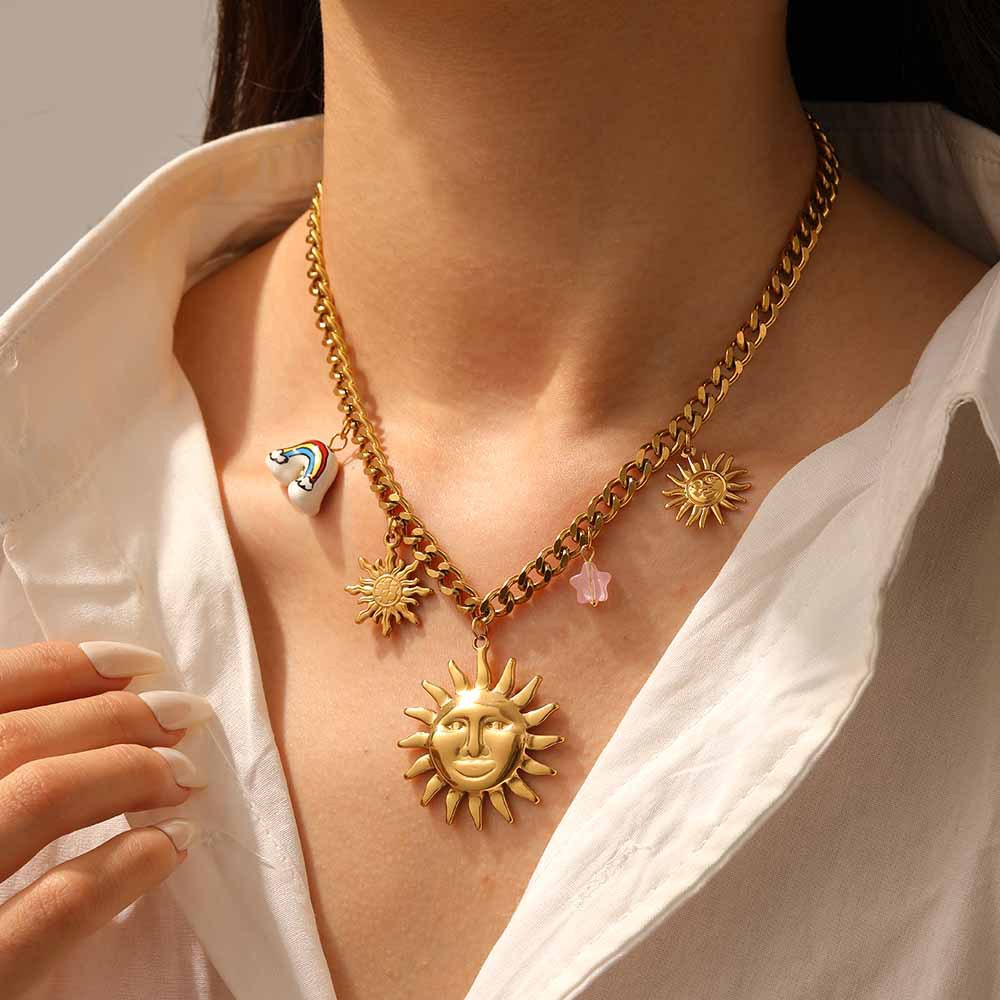 Home > New Arrival > Niche personalized versatile gold-plated stainless steel face sun ceramic rainbow pendant chain jewelry set