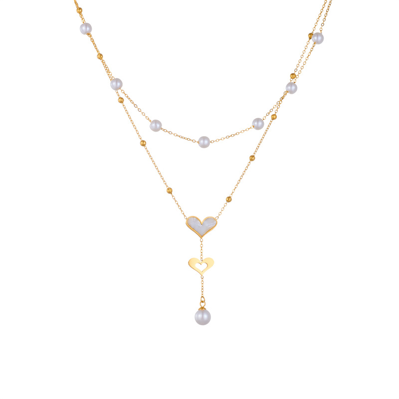 Home > New Arrival > Niche retro double-layer chain pearl butterfly tassel pendant necklace