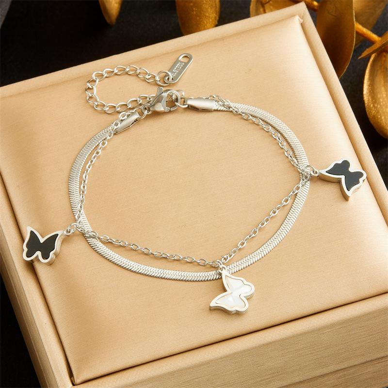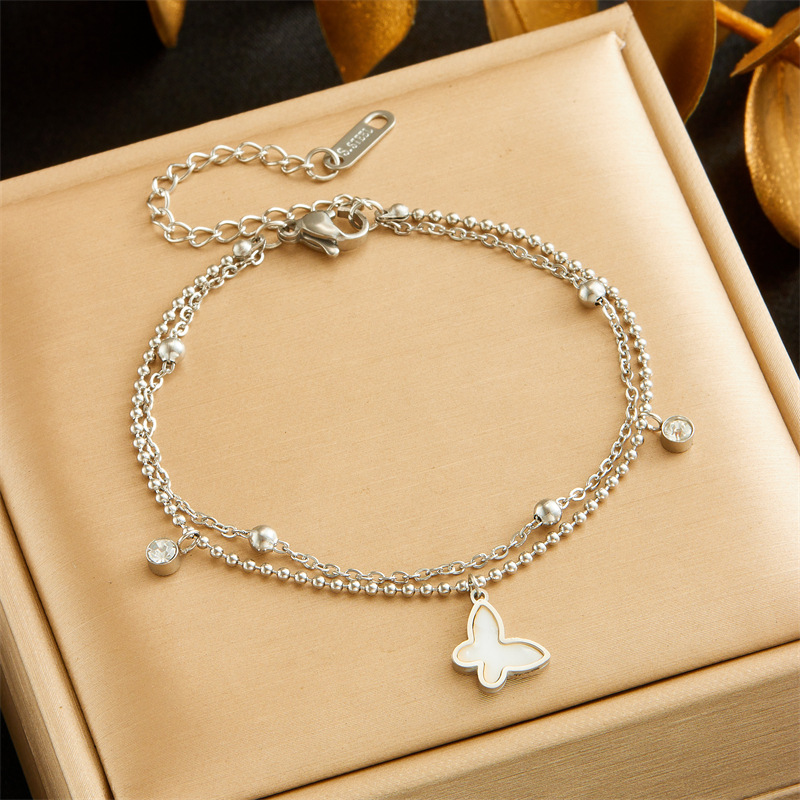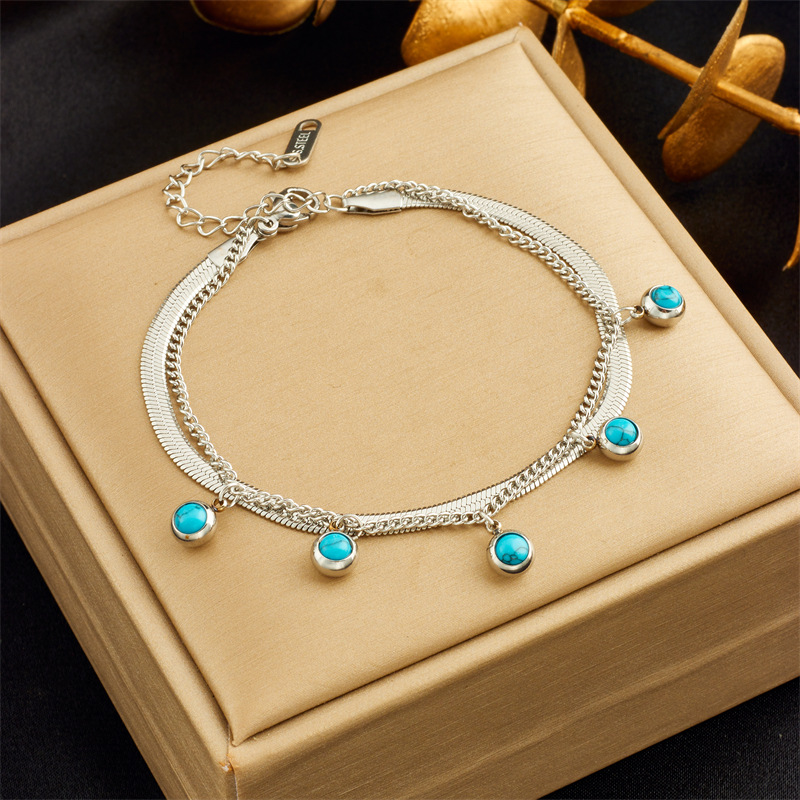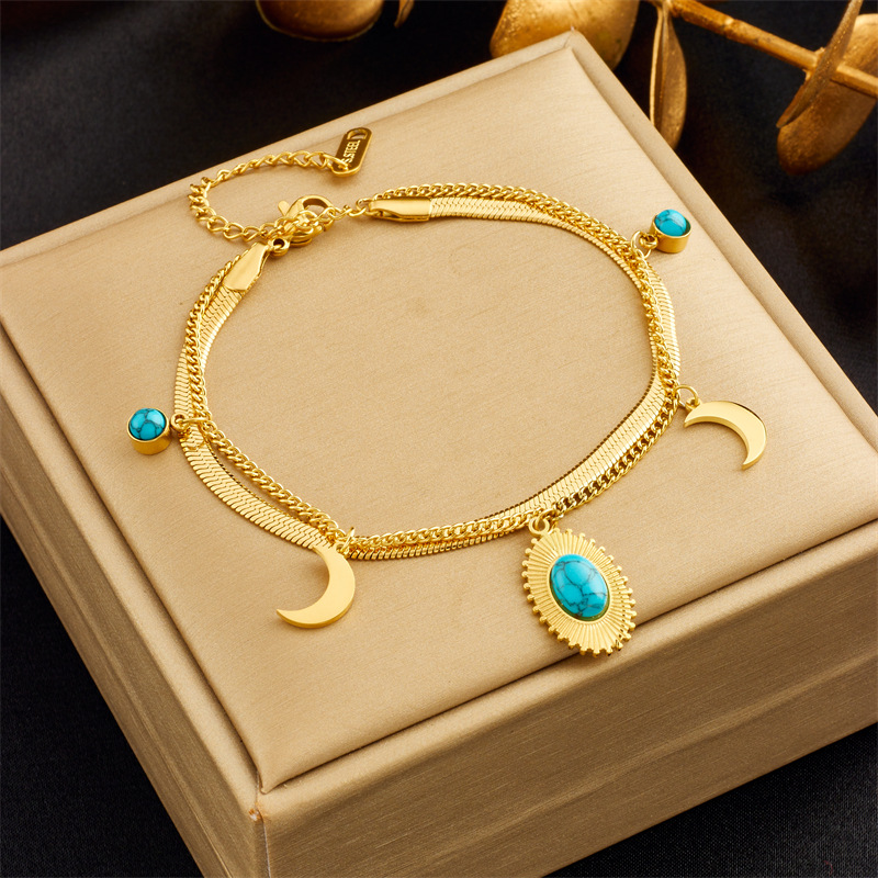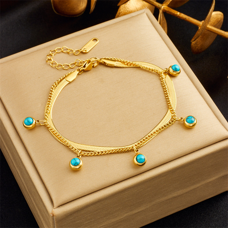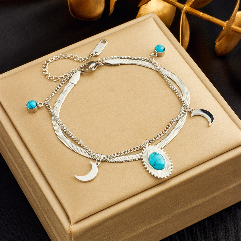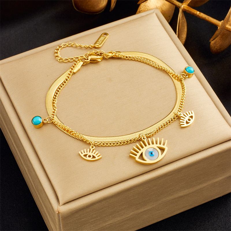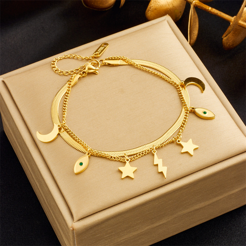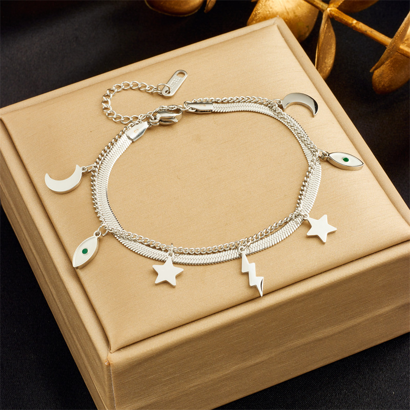 Home > New Arrival > Niche retro high-end double-layered diamond-encrusted round blue eye star lightning pendant bracelet