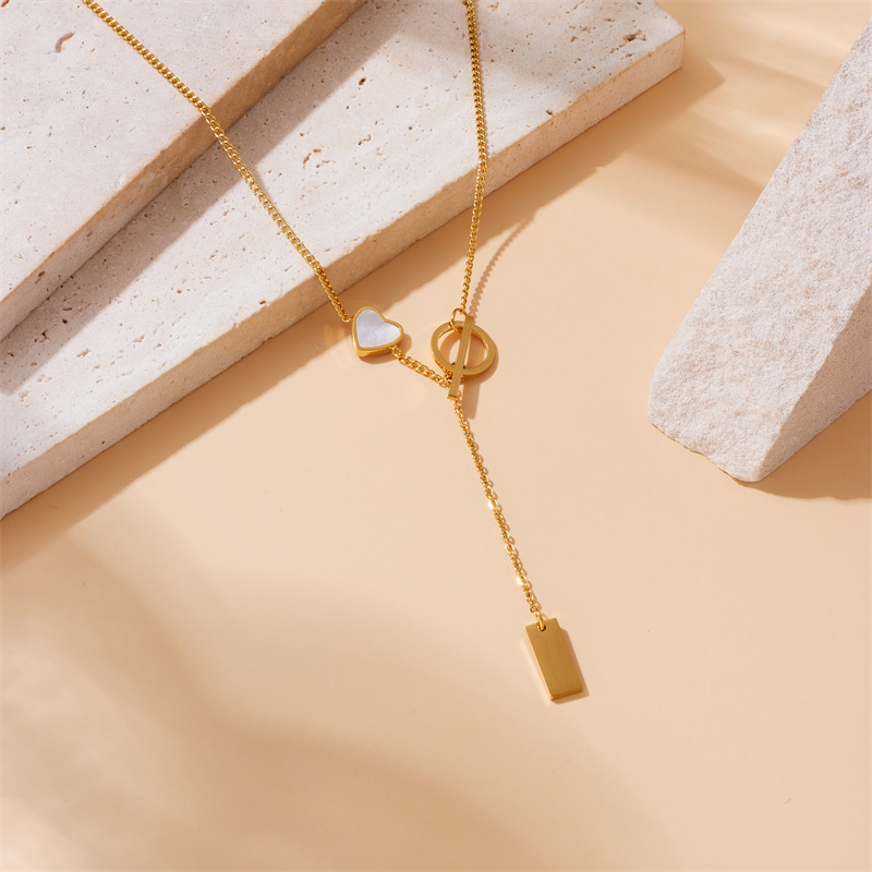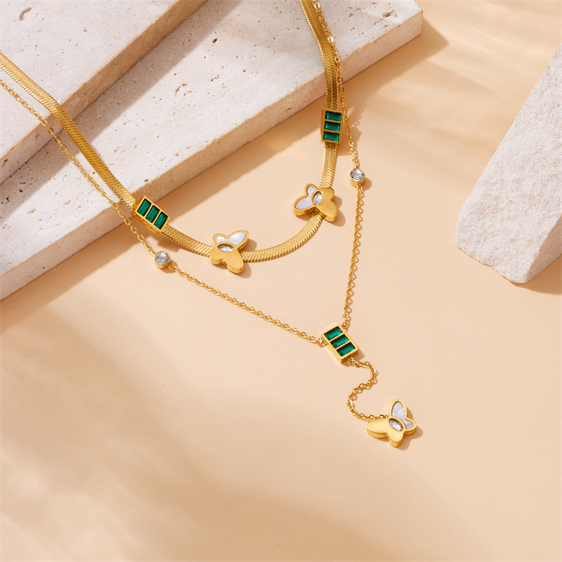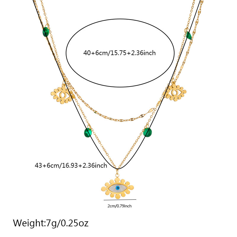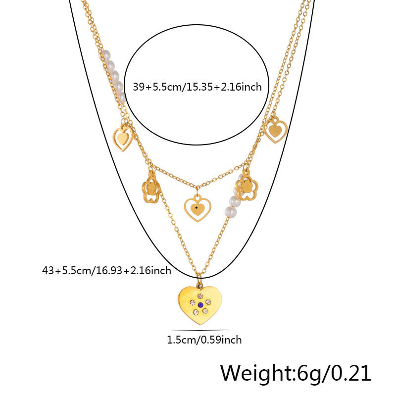 Niche retro high-end gold-plated stainless steel pearl heart eye butterfly pendant multi-layer necklace