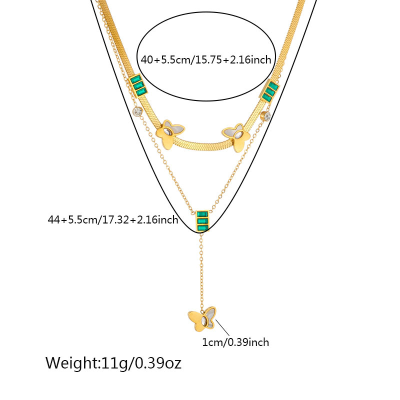 Home > New Arrival > Niche retro high-end gold-plated stainless steel pearl heart eye butterfly pendant multi-layer necklace