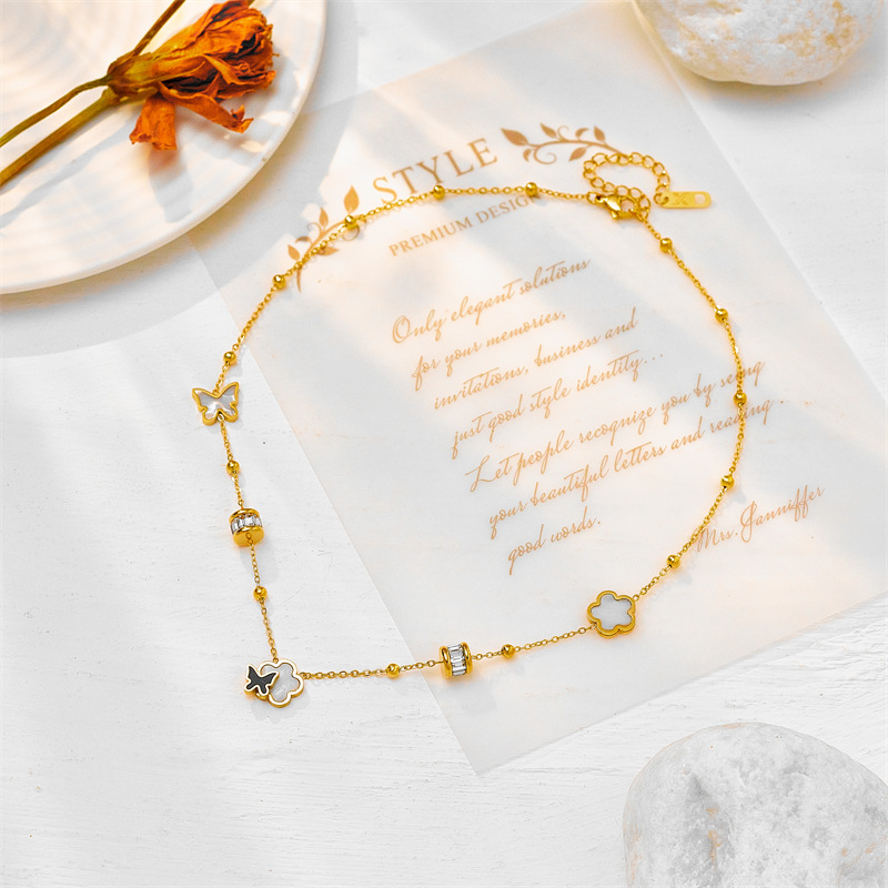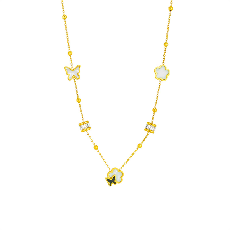 Home > New Arrival > Niche seashell black and white butterfly flower tassel necklace, high-end titanium steel clavicle chain