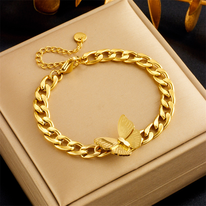 Home > New Arrival > Niche versatile light luxury high-end titanium steel heart butterfly diamond round eye bracelet