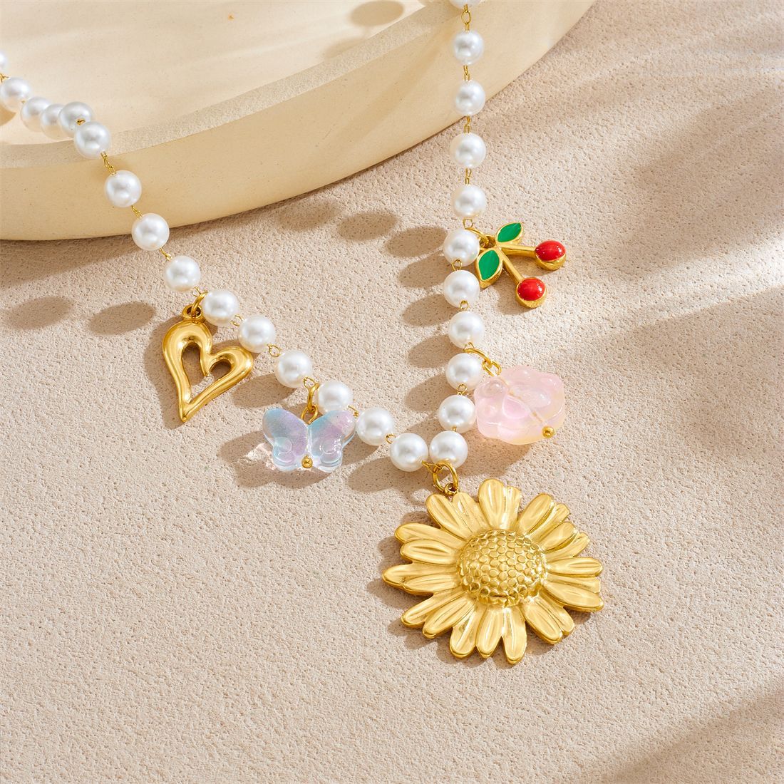 Home > New Arrival > Pearl chain gold-plated cherry fruit pendant heart sunflower flower accessory necklace