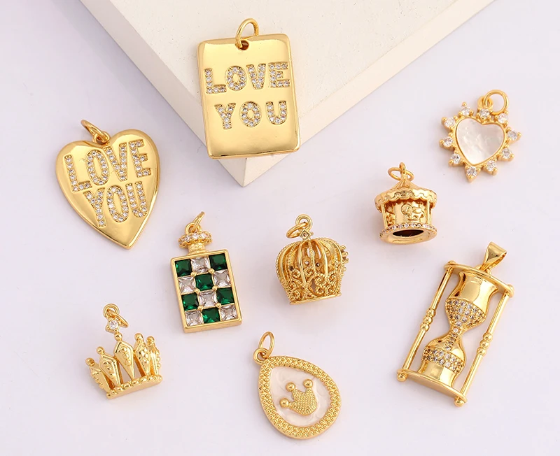 Pearl Enamel OiL Dropped Crown Love Heart Cubic Zirconia CZ Paved Charm Pendant,18K Gold Plated Colour,Craft Jewelry Supply M61