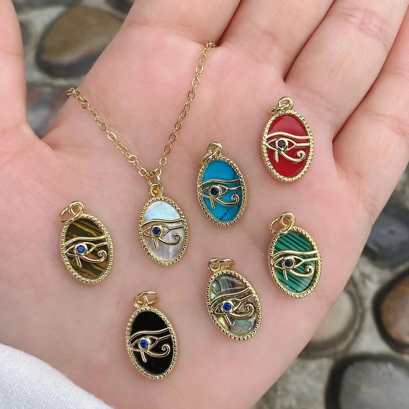 Personalized Evil Eye Natural Mother of Pearl Shell Agate Malachite Tiger Eye Pendant Charm,Jewelry For Necklace Accessories M32