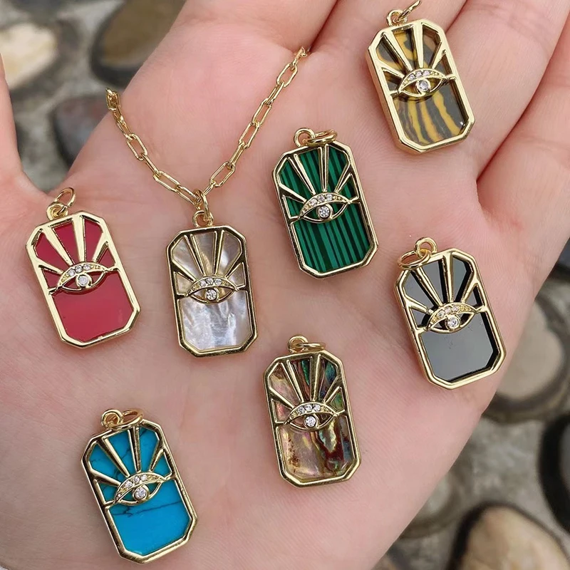 Home > New Arrival > Personalized Evil Eye Natural Mother of Pearl Shell Agate Malachite Tiger Eye Pendant Charm,Jewelry For Necklace Accessories M32