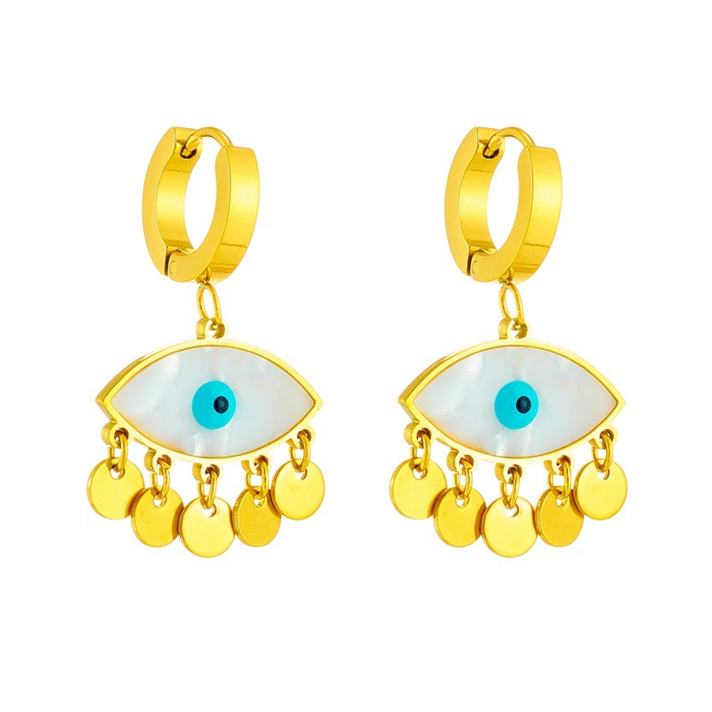 Home > New Arrival > Personalized fashion creative niche oval blue eye earrings with round tassels titanium steel jewelry ear hoops