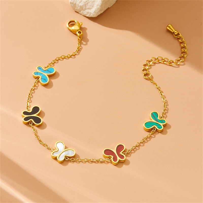 Home > New Arrival > Personalized minimalist colorful butterfly accessory chain stainless steel bracelet earring necklace jewelry set