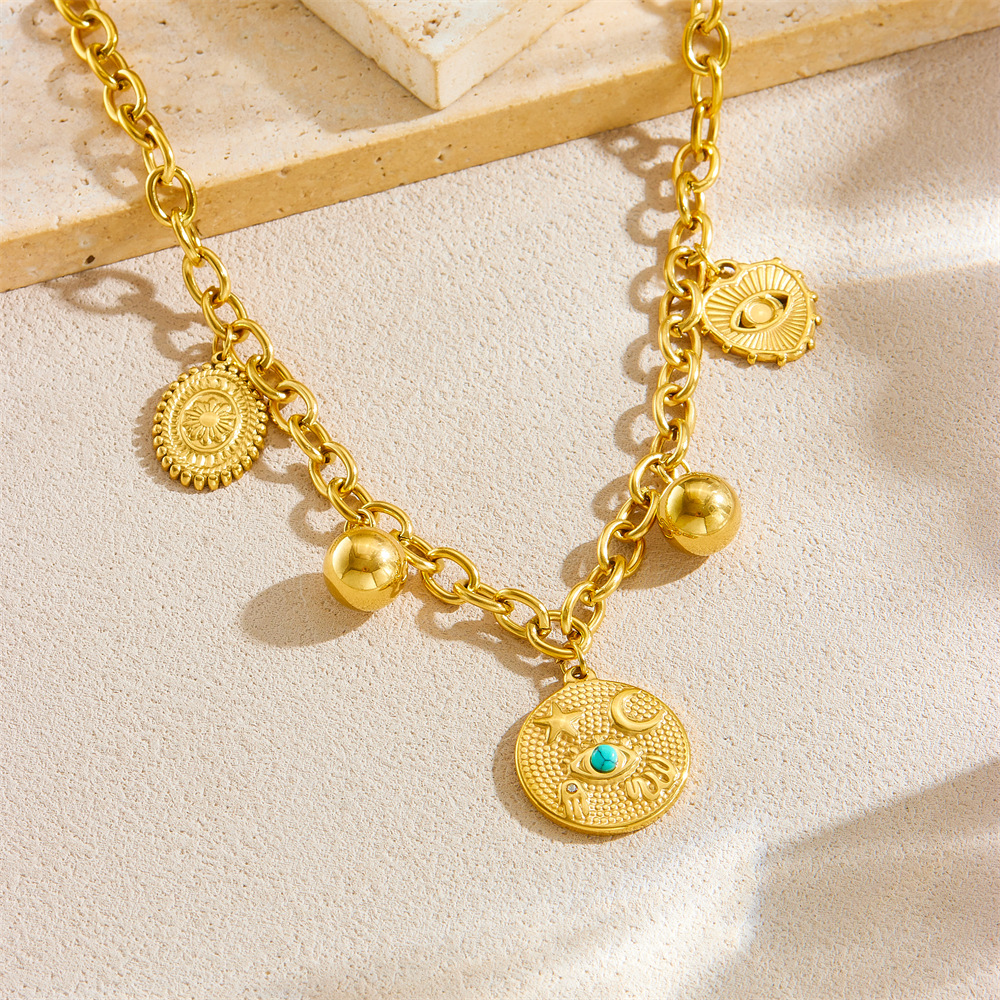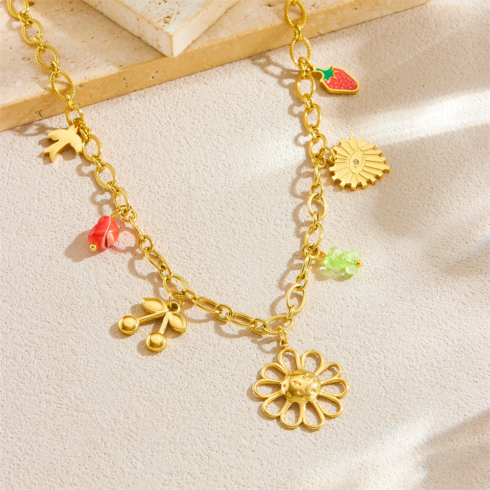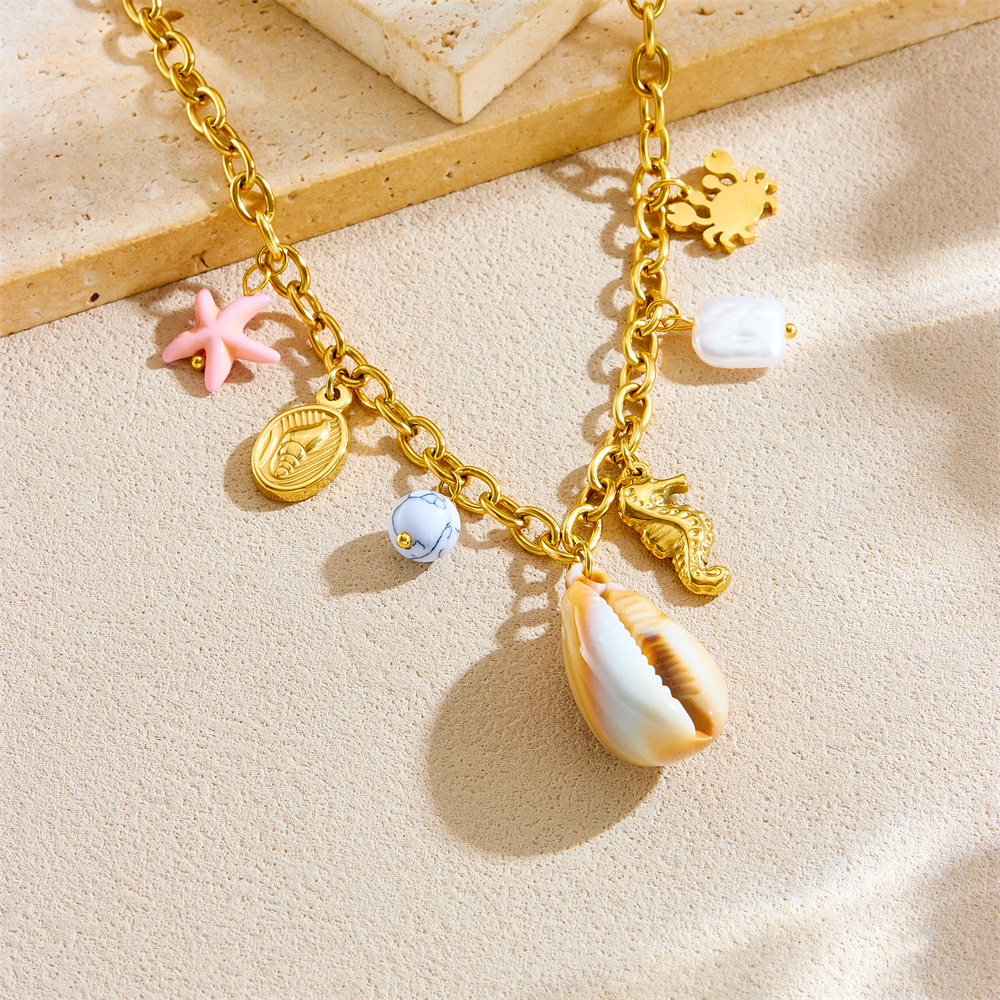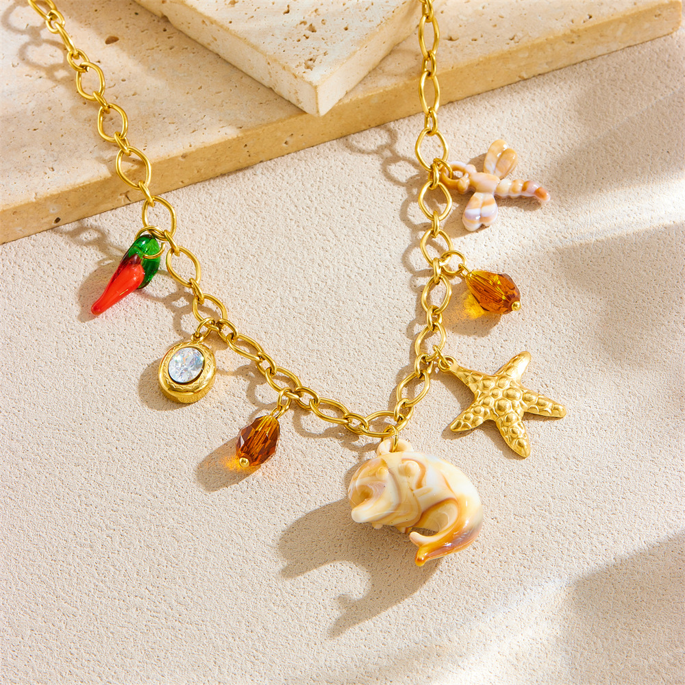 Home > New Arrival > Popular multi-element accessory pendant stainless steel metal marine life flower dripping moon sun necklace