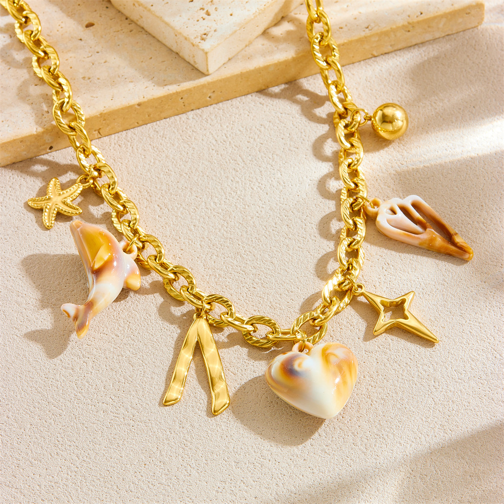 Popular multi-element accessory pendant stainless steel metal marine life flower dripping moon sun necklace