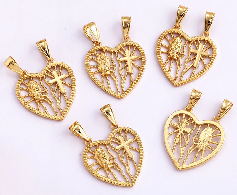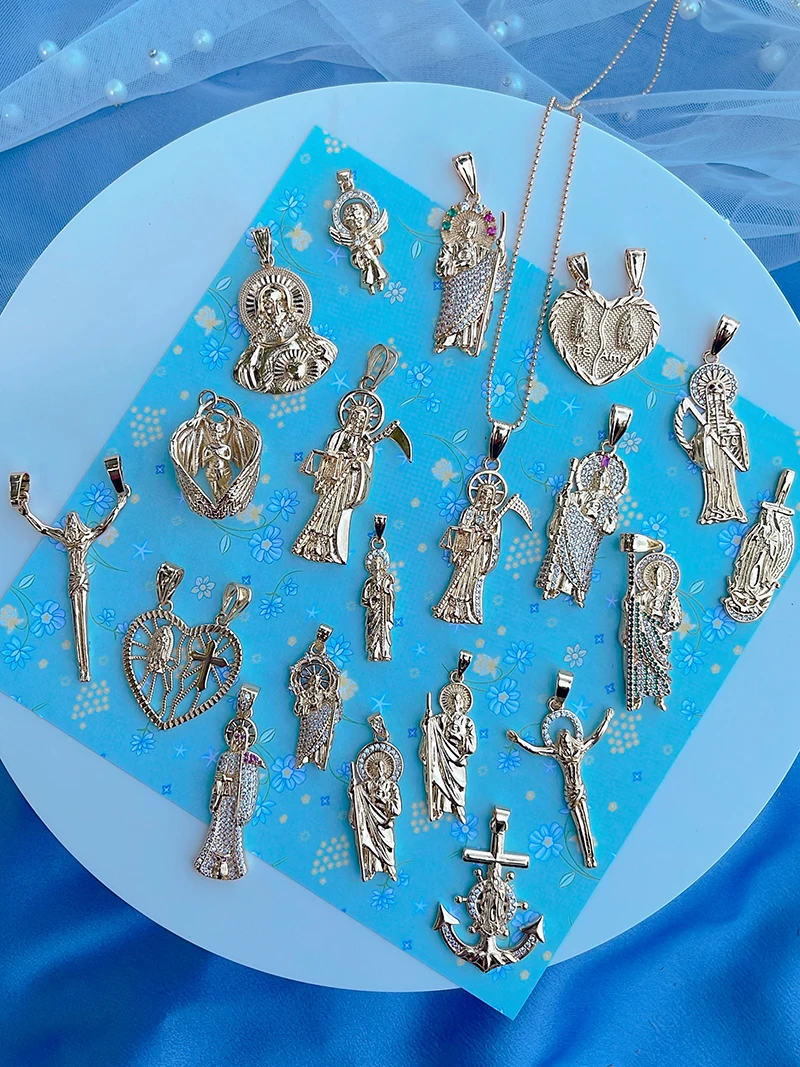 Religious Holy Jesus Guardian Angel Love Heart Charms Pendant,Latest Gold Plated Micro Zircon Jewelry Necklace Accessories L02