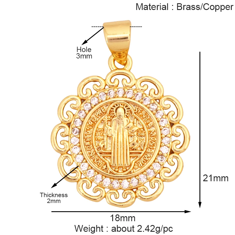 Religious Stye Jesus Virgin Mary Charm Geometry Pendant,Holy Real 18K Gold Inlaid Cubic Zirconia Jewelry Necklace Supplies S12