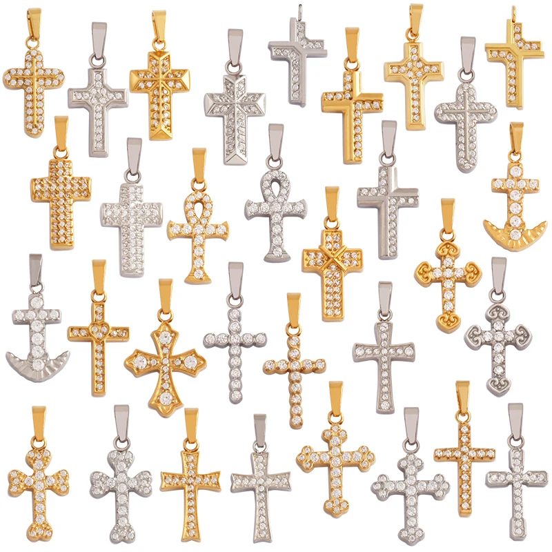 Religious Style Cross Charm Pendant,316 Stainless Steel Cubic Zirconia Jewelry Findings Necklace Bracelet Accessories Supplies