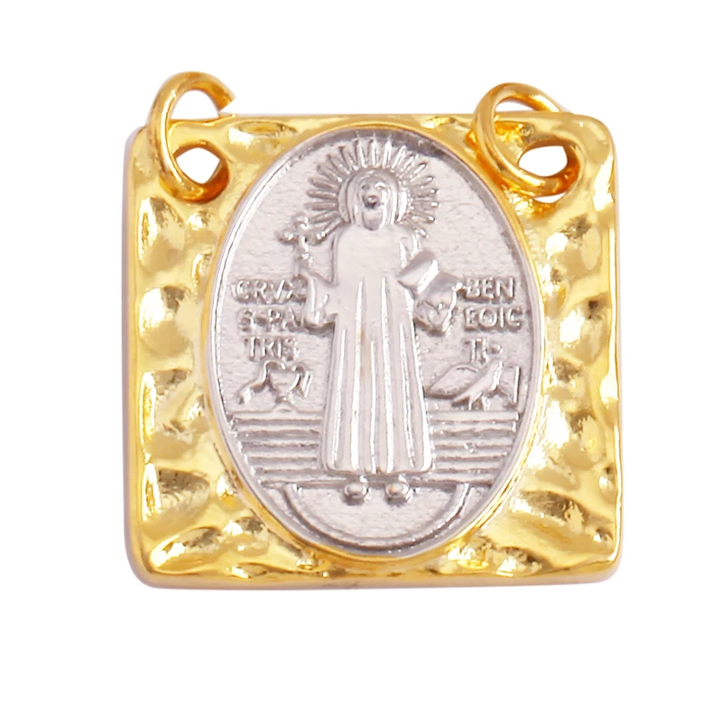 Religious Style Holy Virgin Mary Jesus Geometry Charm Pendant,18K Gold Inlaid Cubic Zirconia Jewelry Necklace Accessories Supply