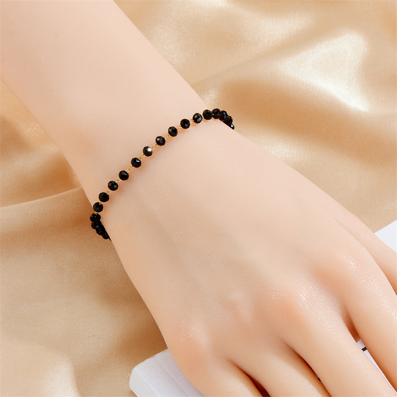 Home > New Arrival > Retro bohemian style stainless steel resin black bead chain necklace and bracelet set for women.