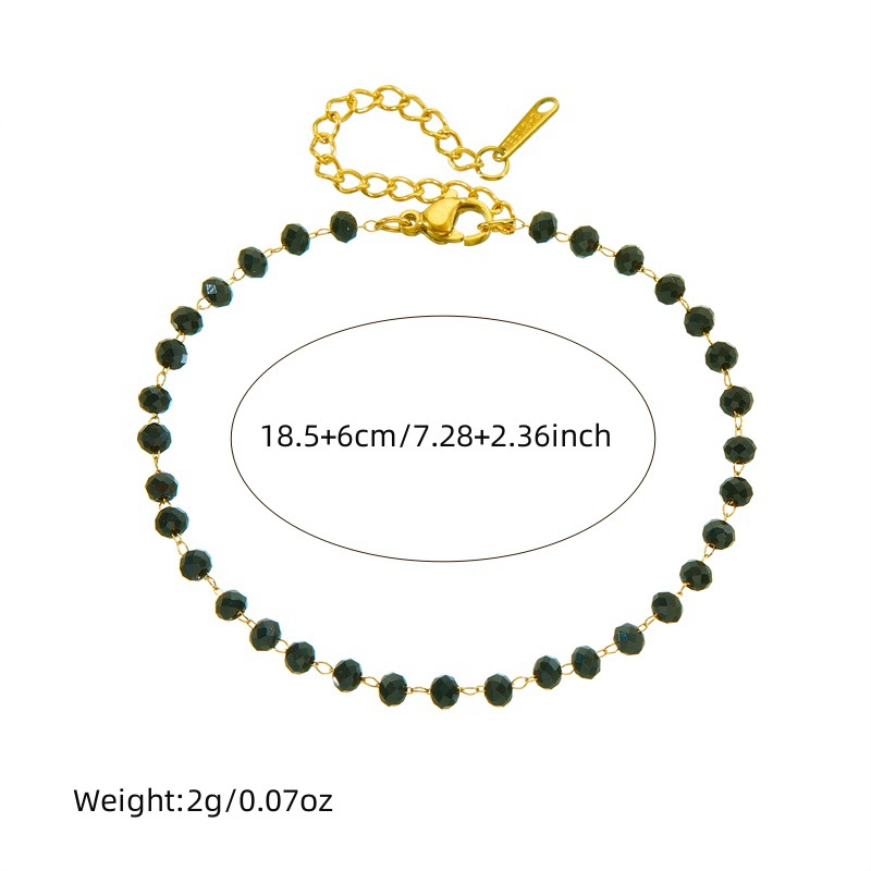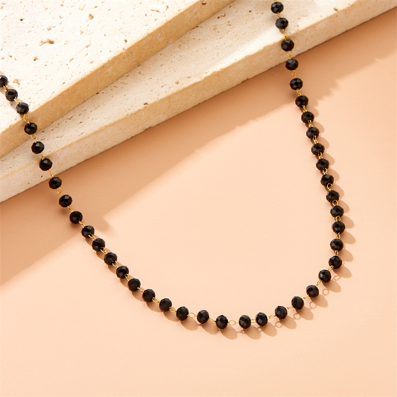 Retro bohemian style stainless steel resin black bead chain necklace and bracelet set for women.