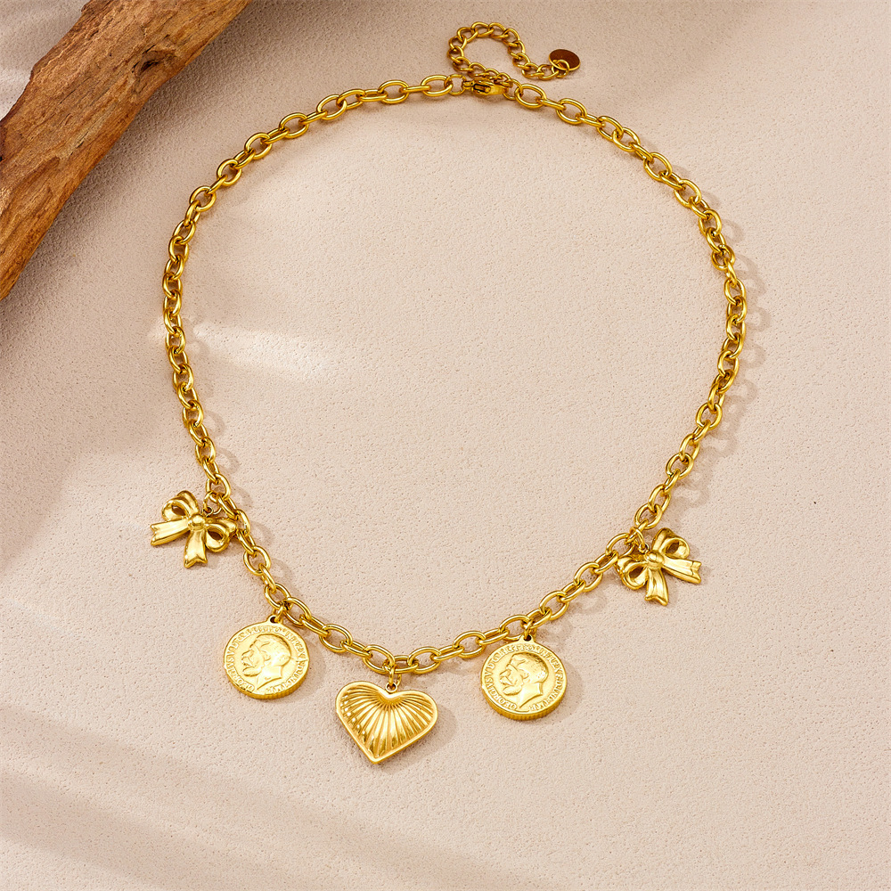 Home > New Arrival > Retro gold-plated heavy-duty O-chain stainless steel portrait round pendant bow heart chain necklace